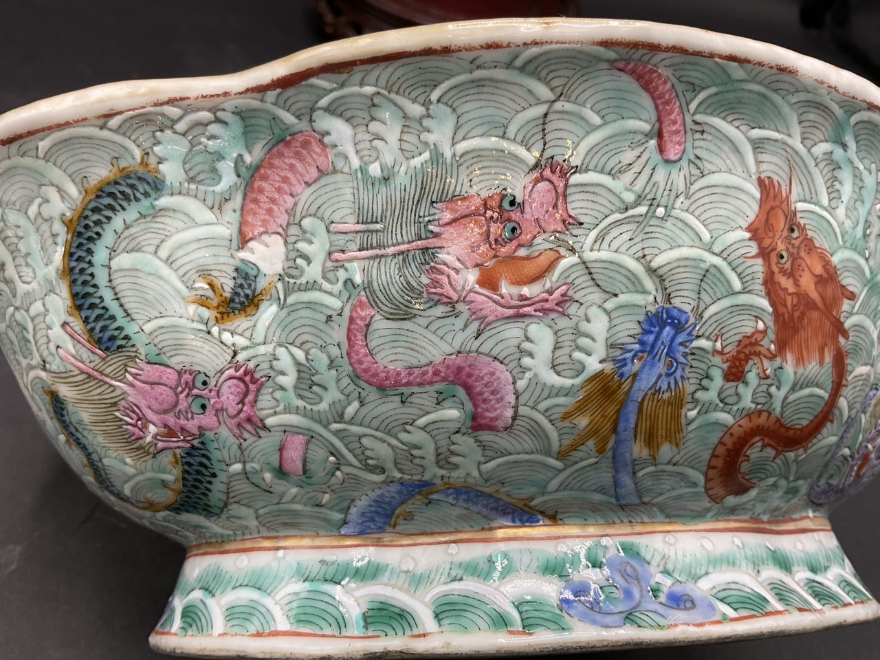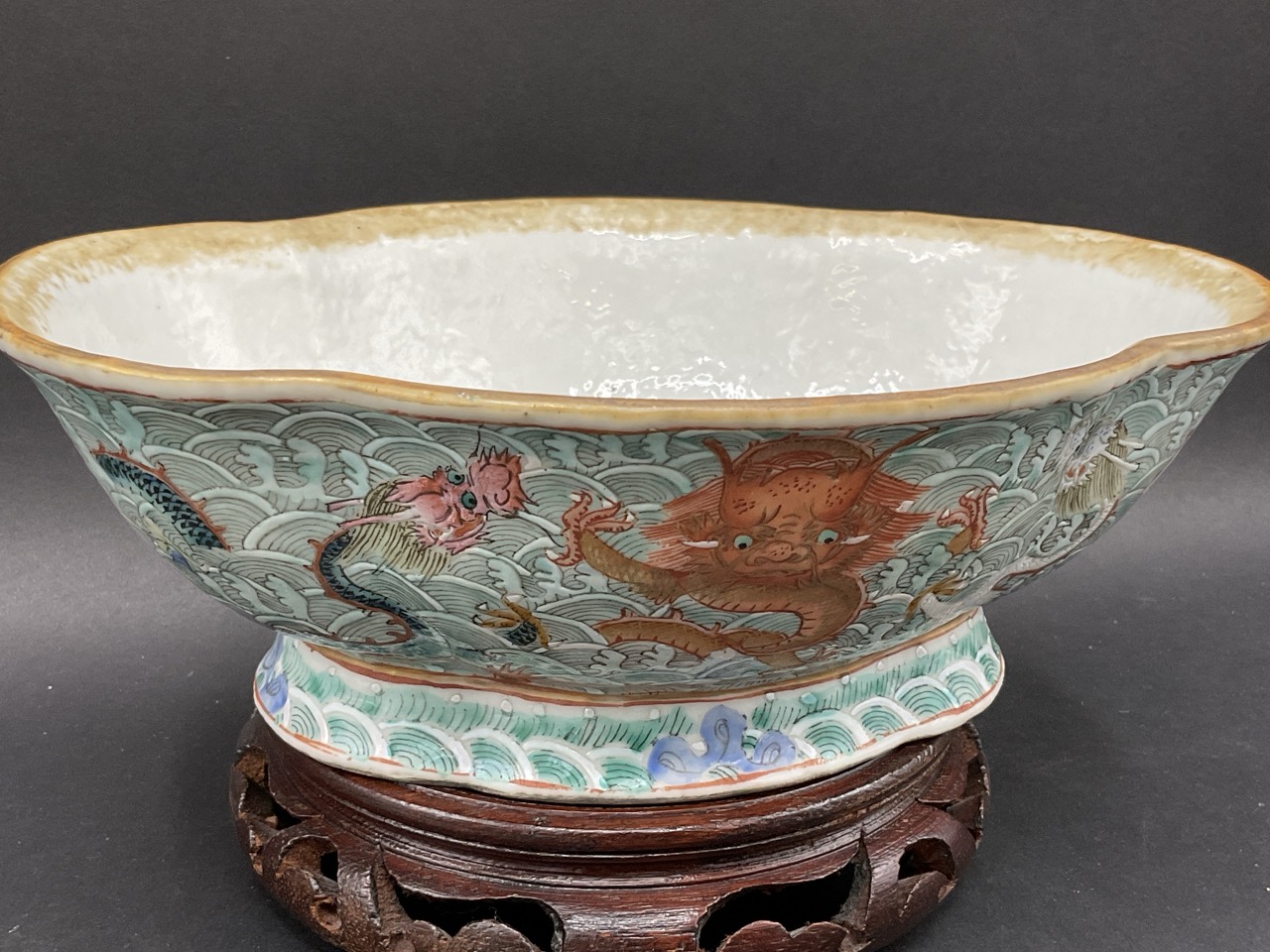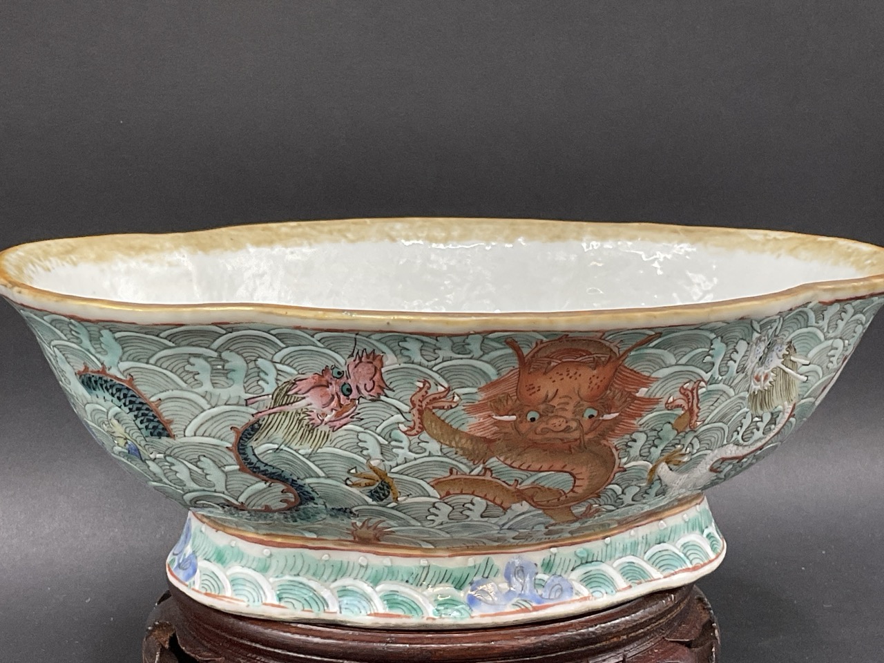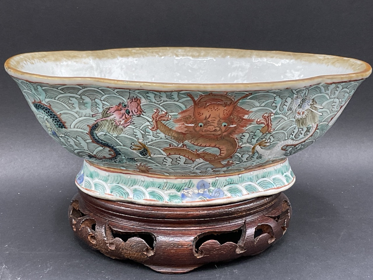 Antique Early Chinese Dragon Porcelain Bowl. Signed at base.