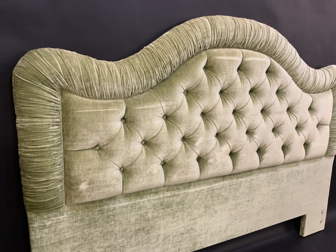 Vintage Velvet Tufted Plush Headboard- King Size. Hollywood Regency Style.