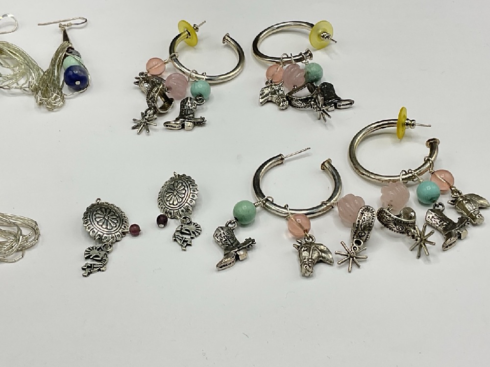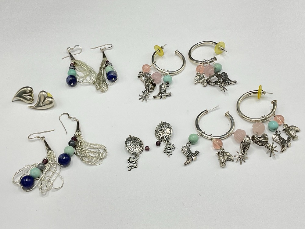Six (6) Pairs Carlisle Southwestern Sterling Silver Earrings. New/Old Stock c. 1990's.