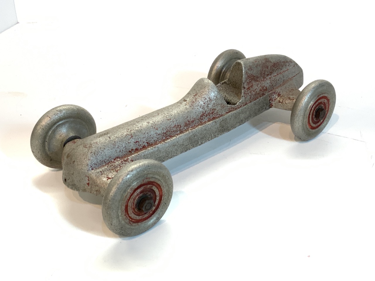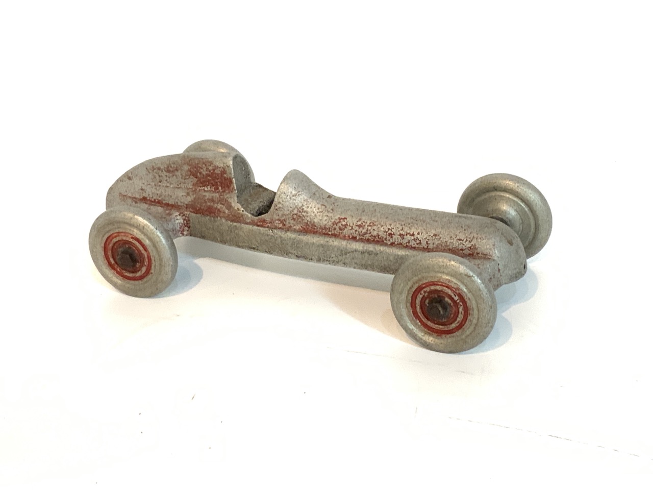 Aluminum race car toy.
