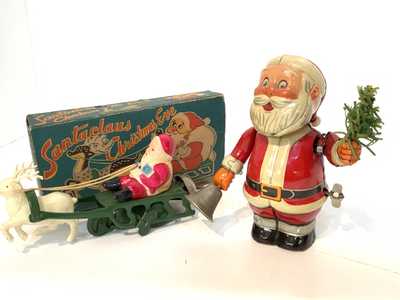 Two (2) Wind Up Toy Santas. One with original box.