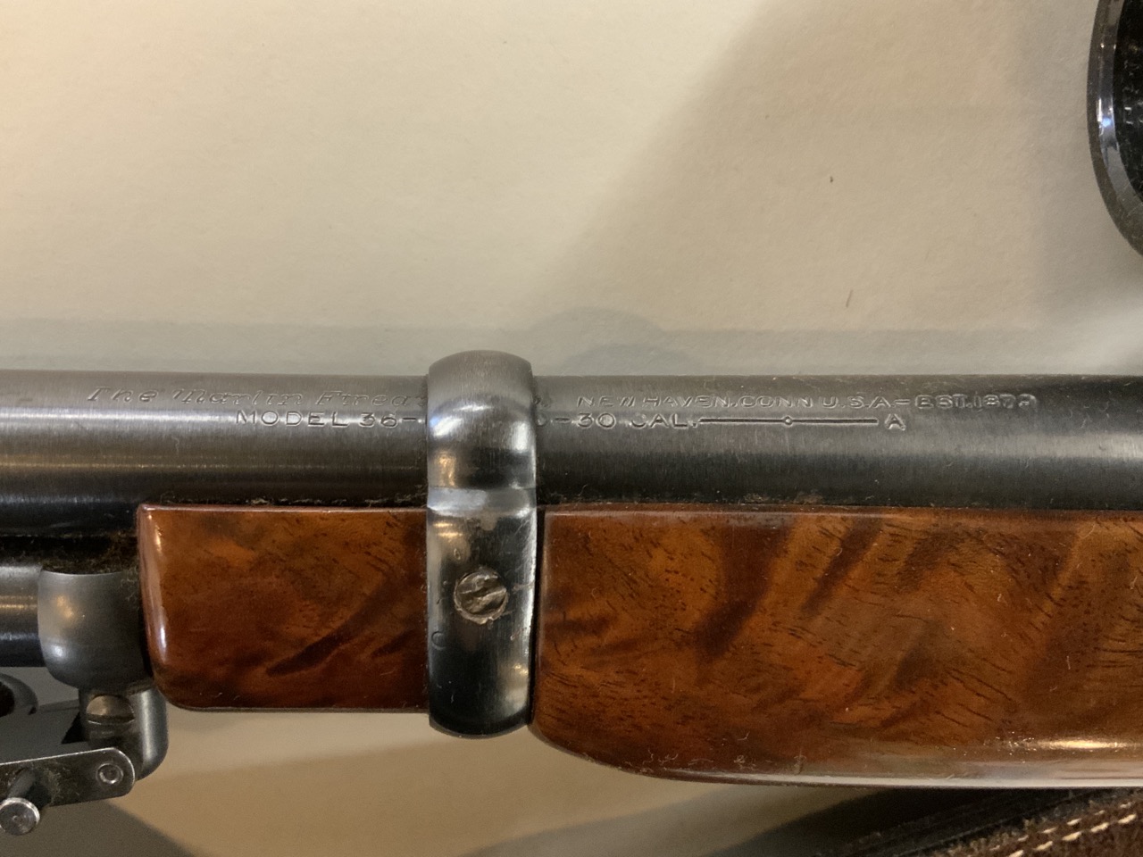 Marlin Model 36, .30 Cal. lever action rifle with scope. . New Haven, CT.