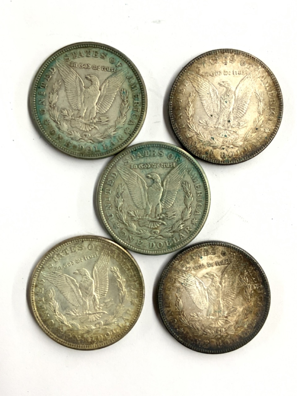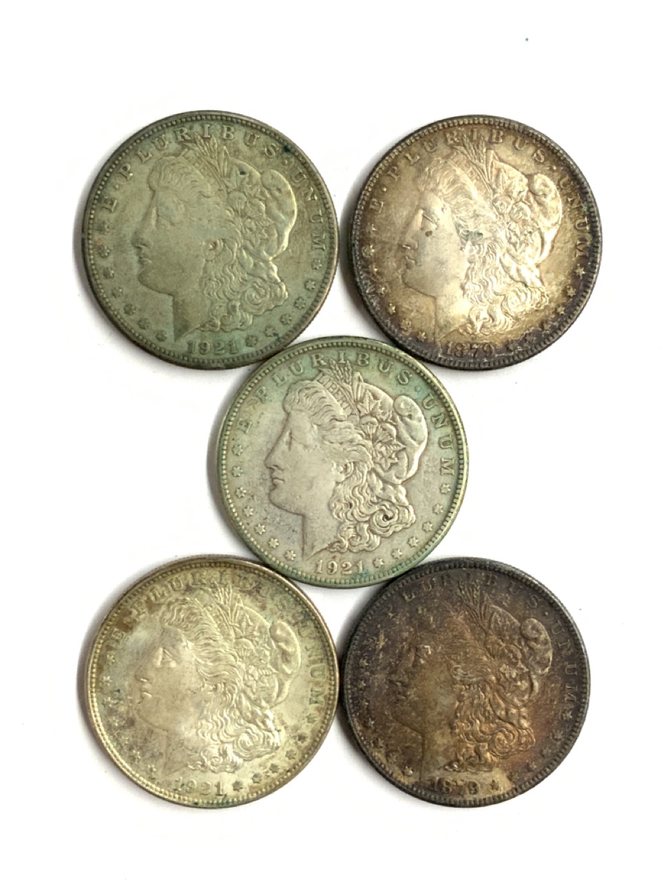 Five (5) Morgan Silver Dollars 1879S,1879S, 1921S, 1921,1921