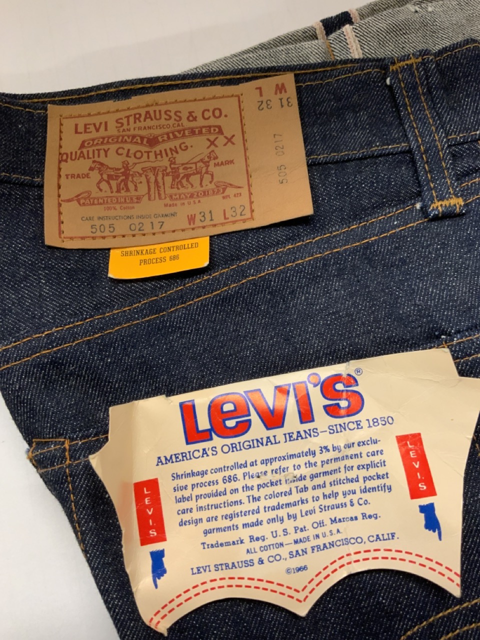 1960's Levi's 505 Jeans 1966 with original tagls. Size 31W L30 Dark blue denim.
