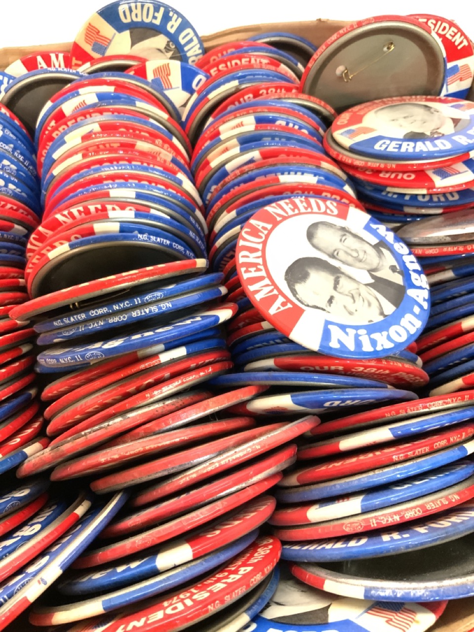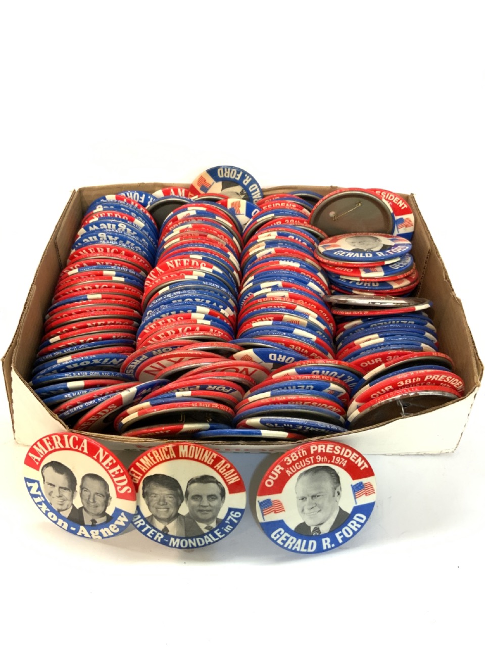 100 Large pinback buttons. Nixon, Carter and Ford Campaigns. 1970's