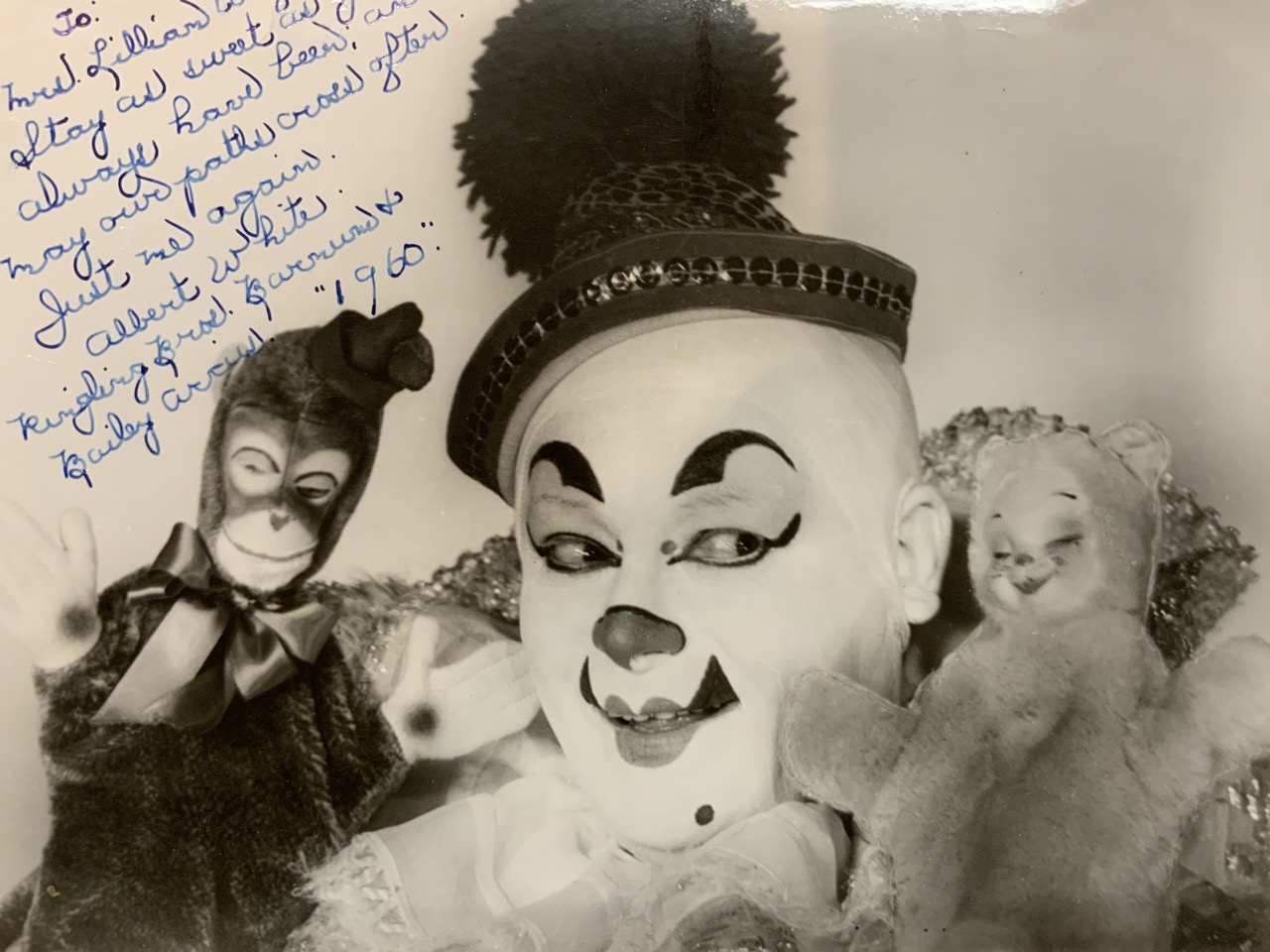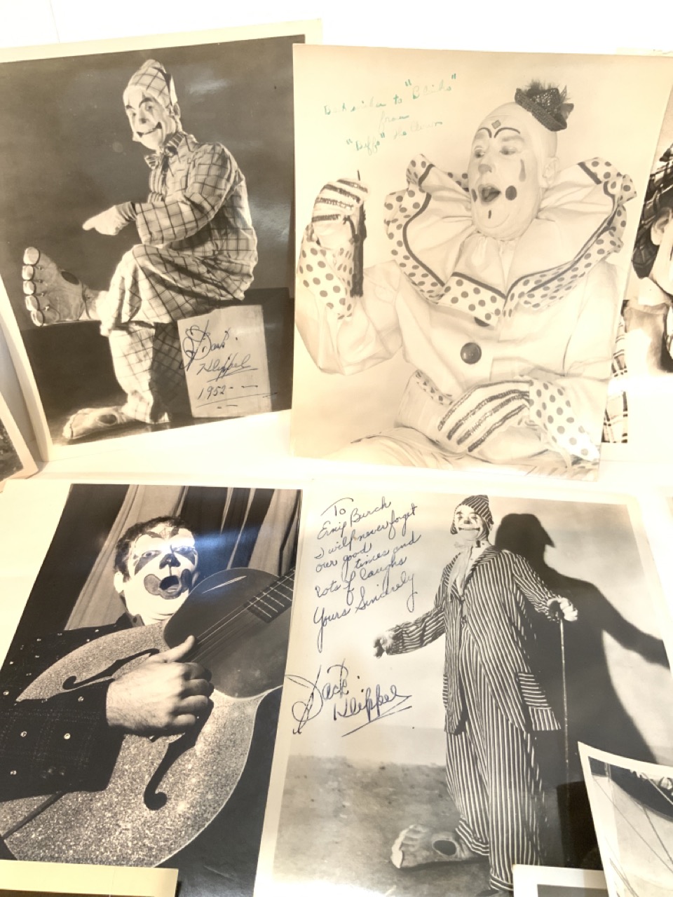 Thirteen (13) vintage black and white vintage photographs. Circus clowns including Albert White, Biffo, Jack McAfee, Jack Klippel