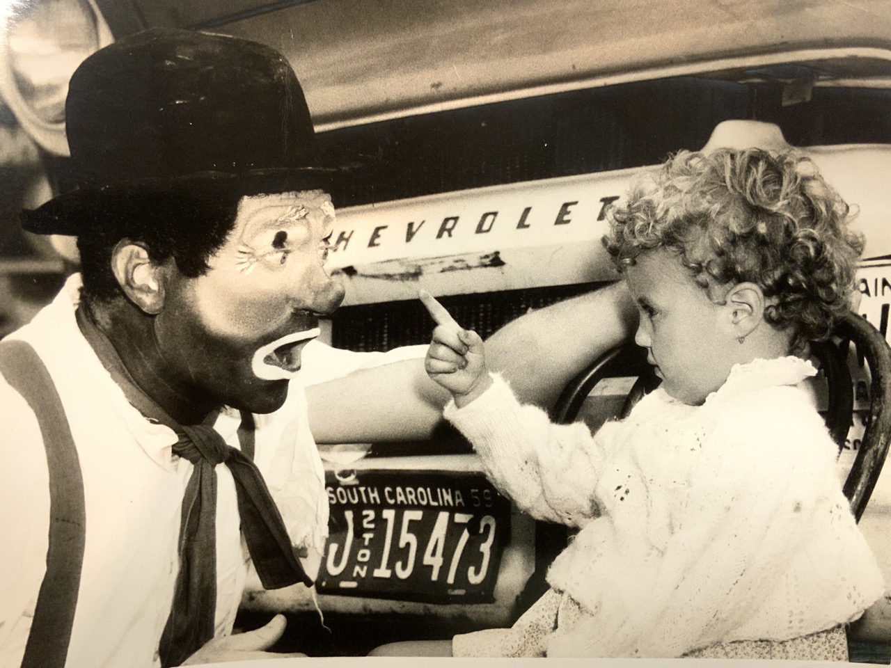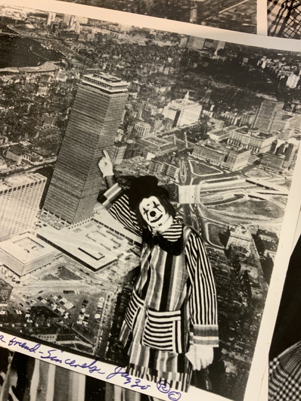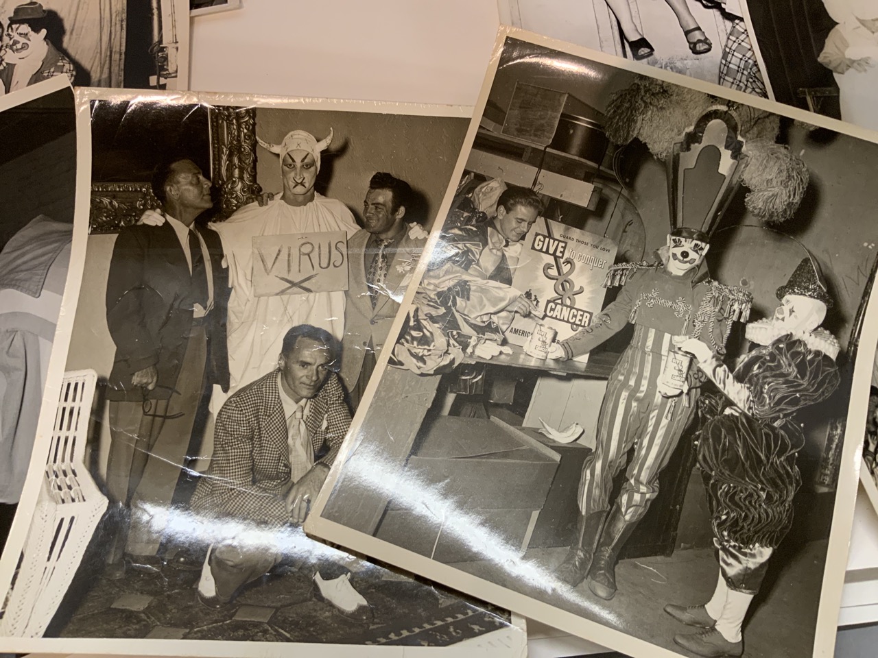 Sixteen (16) black and white original photographs of circus performing clowns 1950's and autographs including Jazzo.