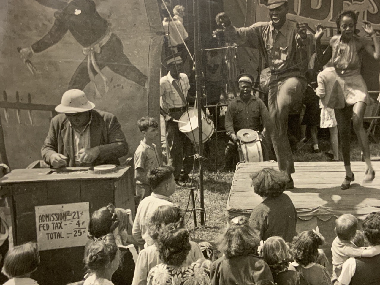 Original black and white photograph image of the Dailey Bros. Sideshow at the circus.