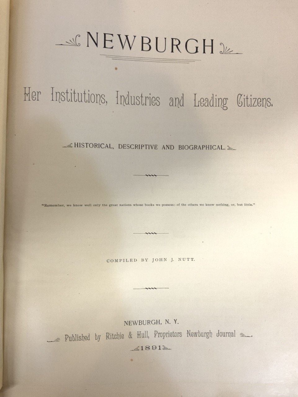 Nutt, John J. (Compiled By) . Newburgh, Her Institutions, Industries and Leading Citizens. Illustrated, Maps, Newburgh, NY Ritchie & Hull Newburgh Journal 1891