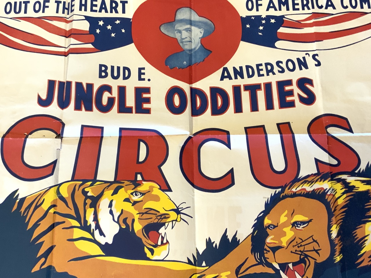 1939 Bud E. Anderson's Jungle Oddities Circus Poster.
