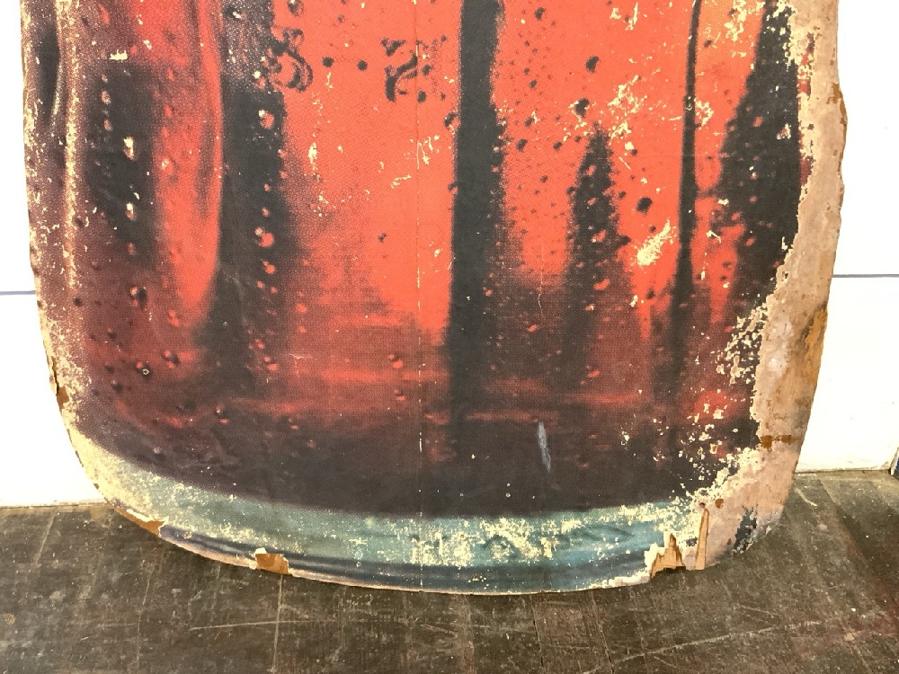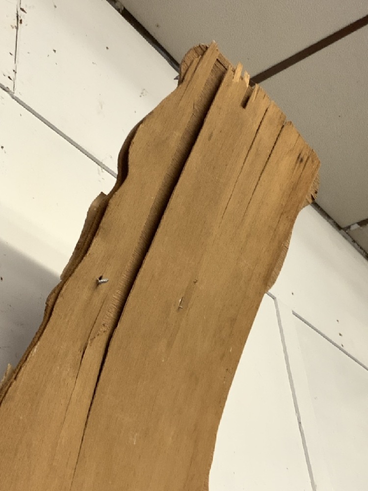 Damage noted along the right side and the bottom and back. The top of the sign is also warped.