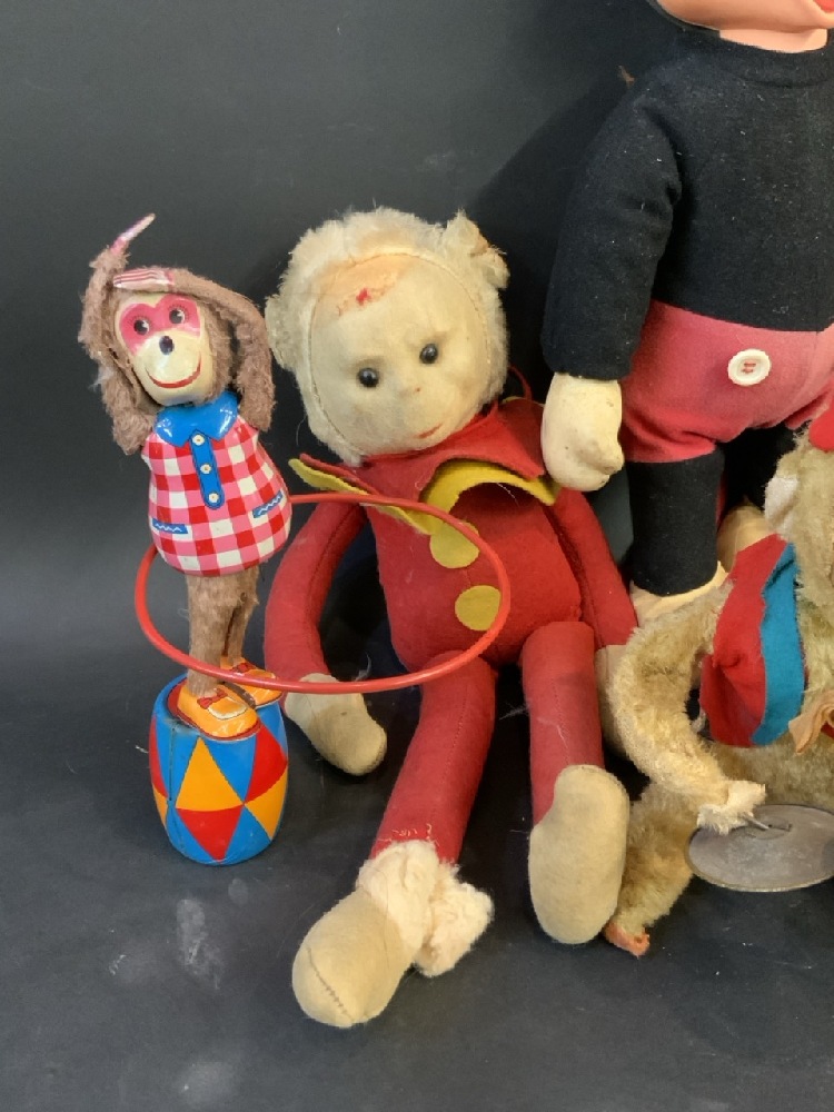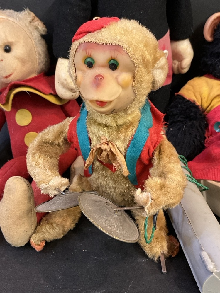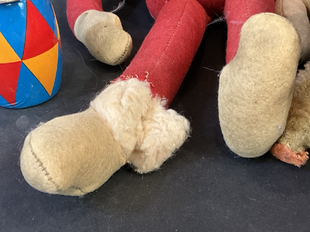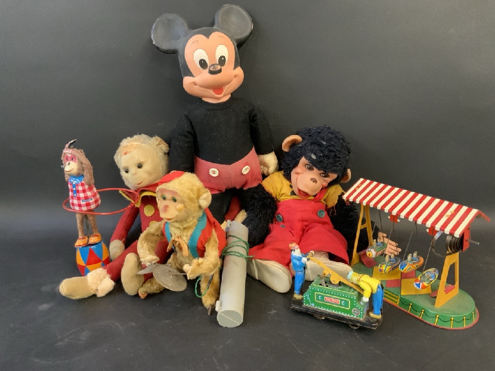 German wined up tin toy is broken near the wind up part as noted in the pictures. The railroad tin cart needs repair