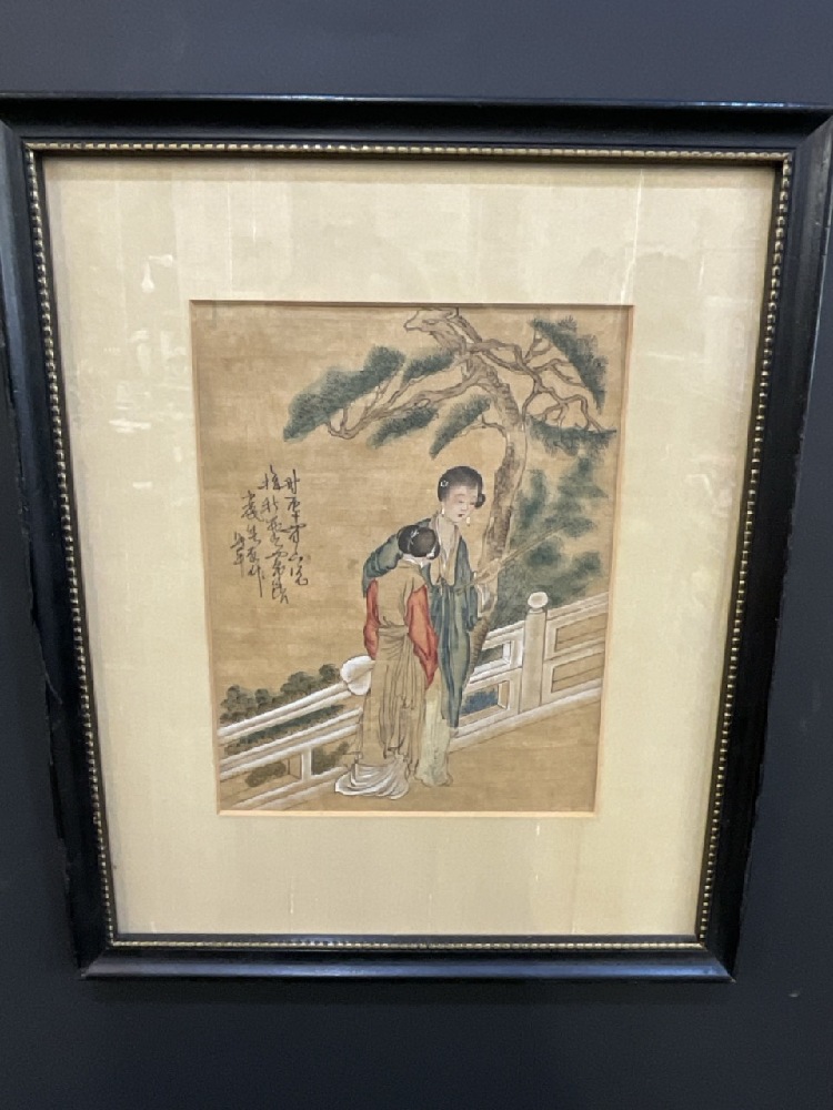 Japanese Geisha Girls Painted on Linen.
