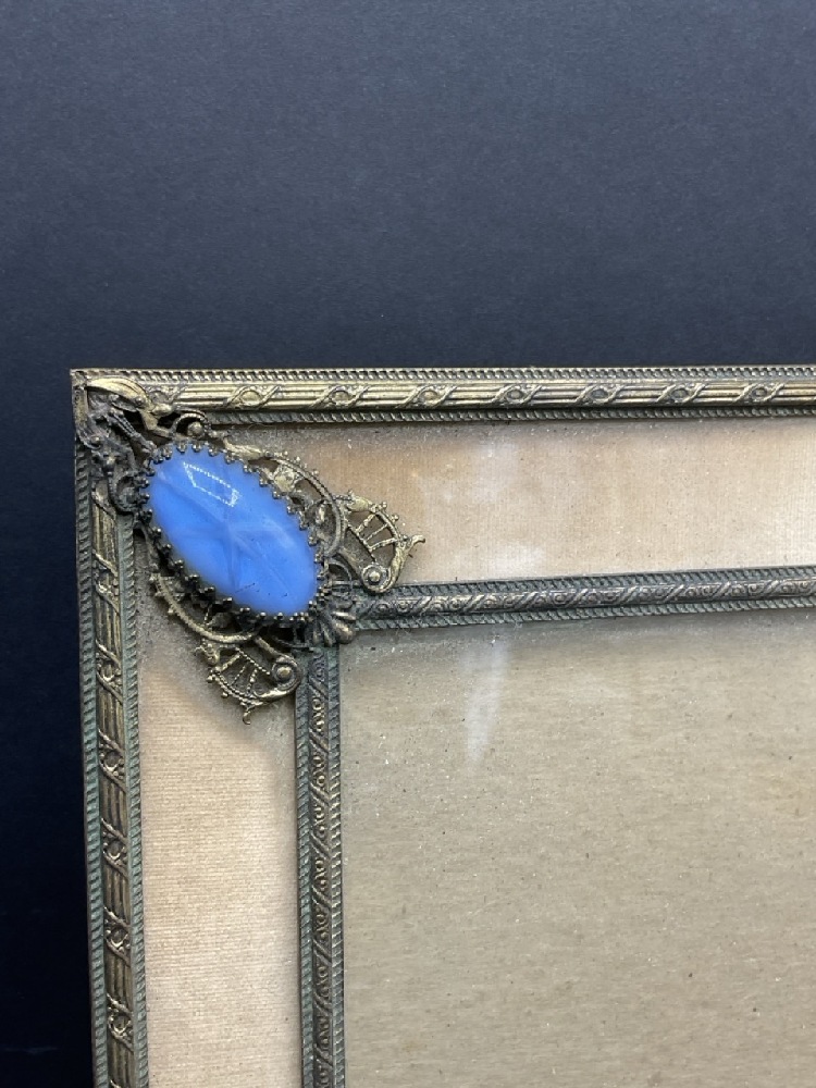 Vintage Jeweled Boudoir Picture Frame with Czech Glass Jewels. Back easel and wall mounts are missing. Please see photograph preview.