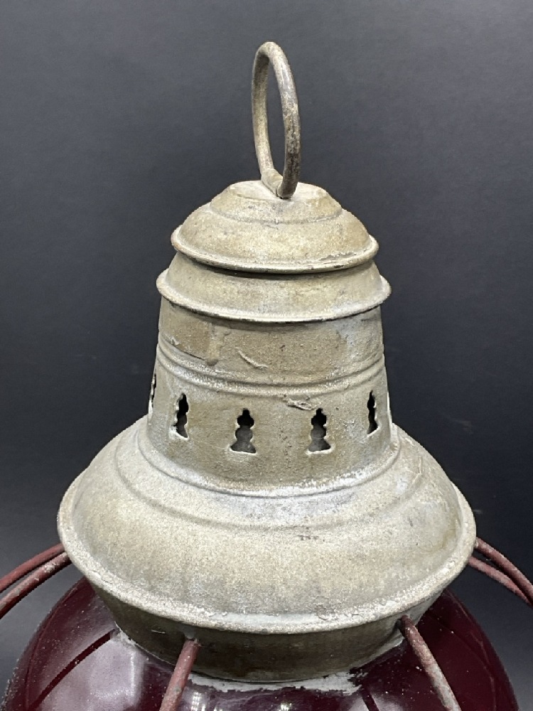 Antique Marine Lantern with Ruby Shade.
