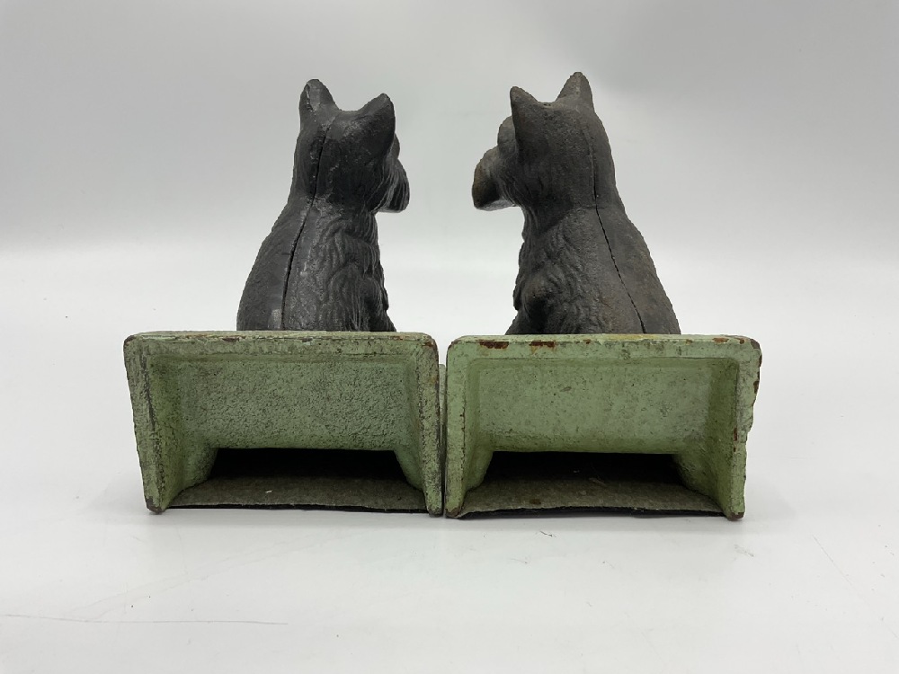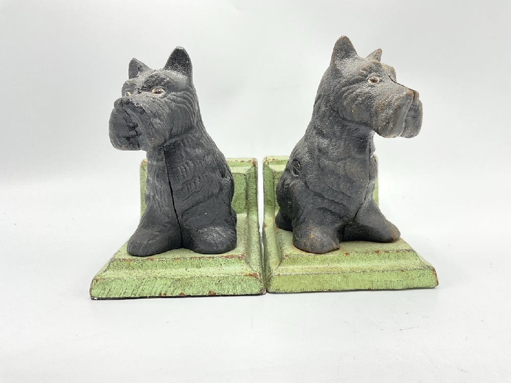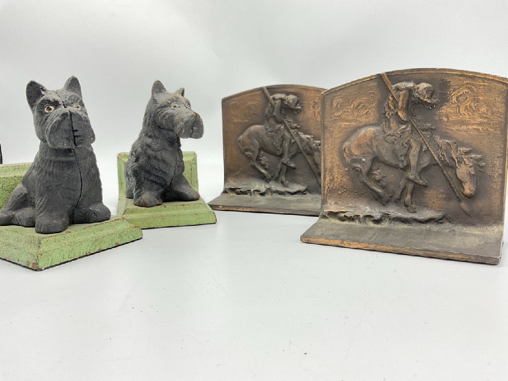 (2) Pairs of Cast Iron Bookends - Scottish Terrier & Soldier Bookends Marked Bronmet.