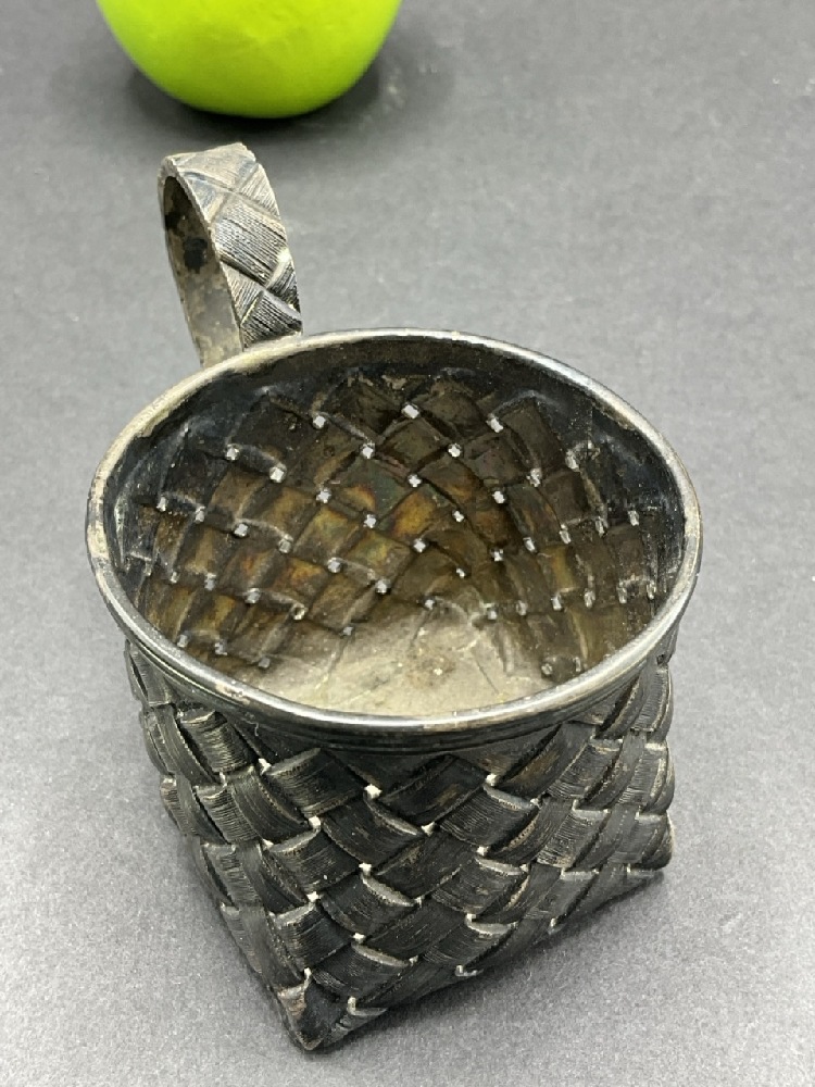 1879 Russian Silver Cup by Ivan Vonifatiyevich Yeustigneyer, St. Petersburg 1870-1894. Very fine detailed woven design. Please see photograph preview.