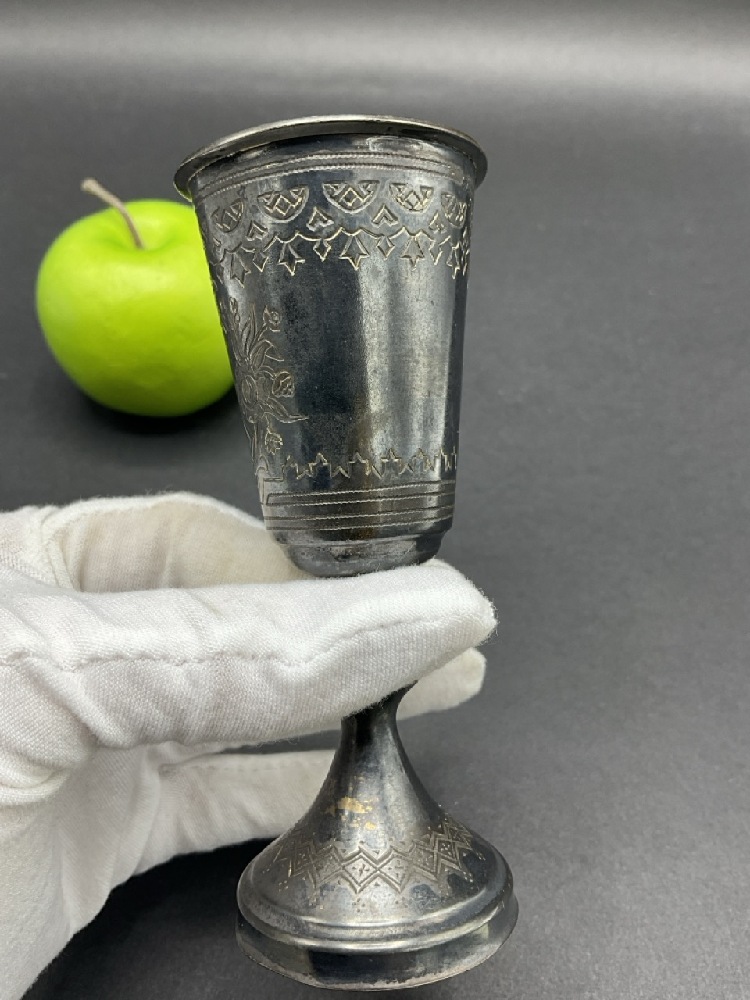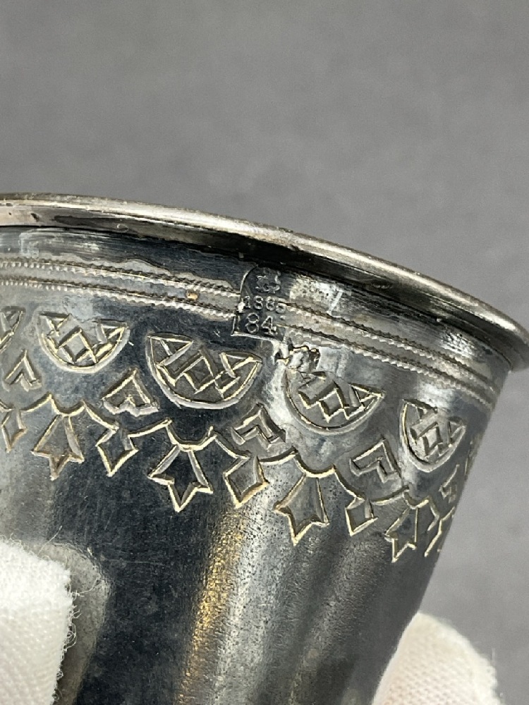 1885 Russian Judaica Silver Kiddish Cup. Moscow c. 1885. Signed and Stamped 84.