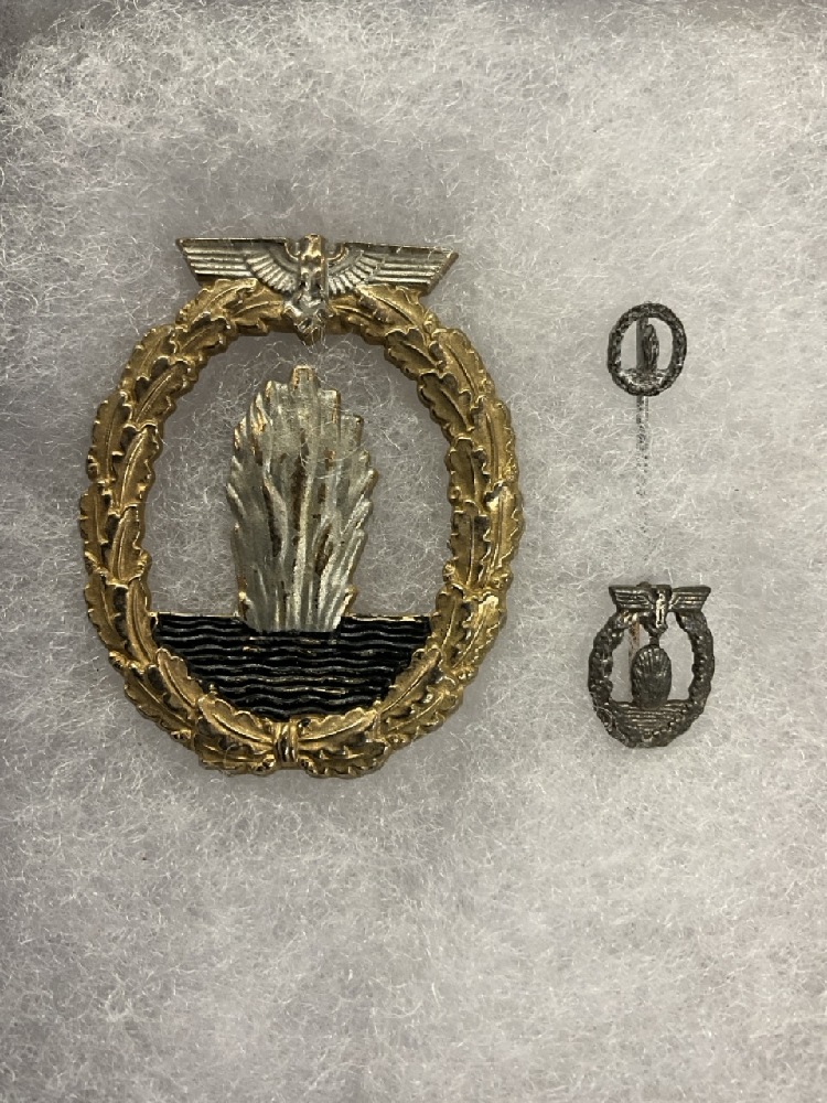 WWII German Mine Sweeper’s Badge & (2) Pins