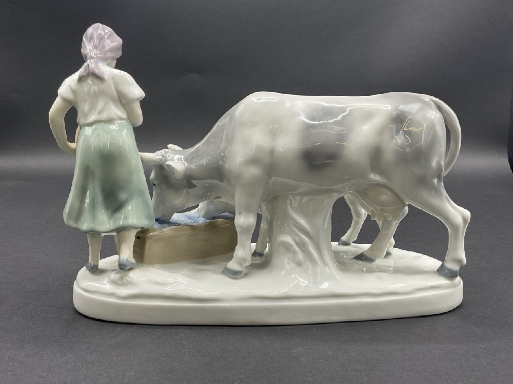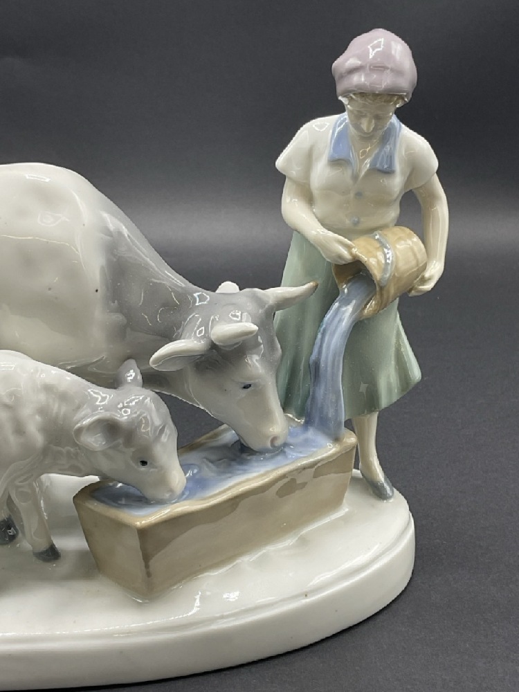 Royal Copenhagen Girl with Cow and Calf # 9552