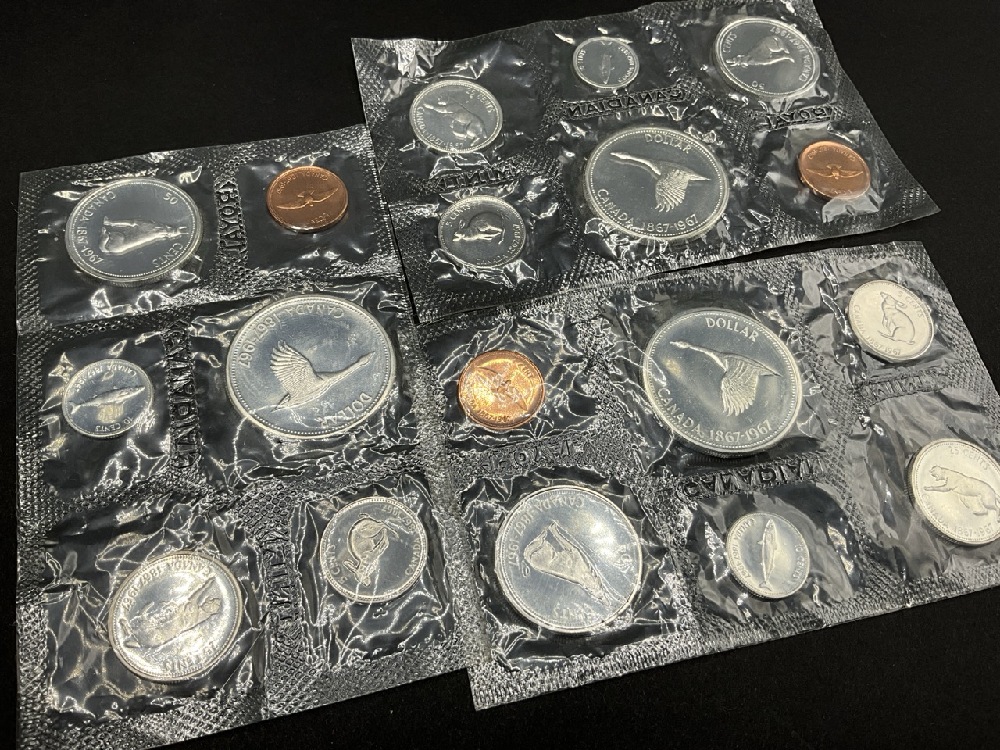 Three (3) 1967 Elizabeth II Silver Proof Sets Royal Canadian Mint.