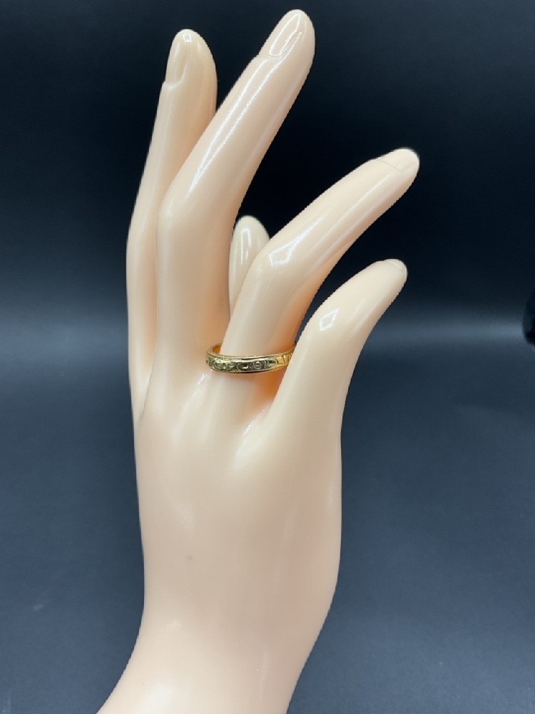18K Yellow Gold Fancy Wedding Band. Inscribed.