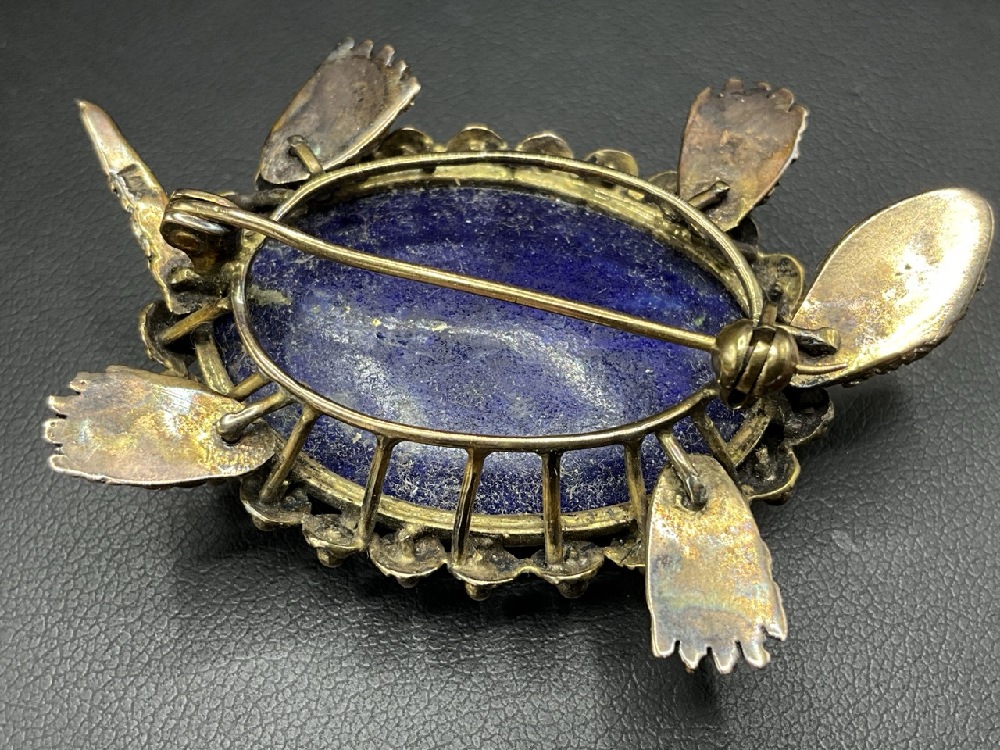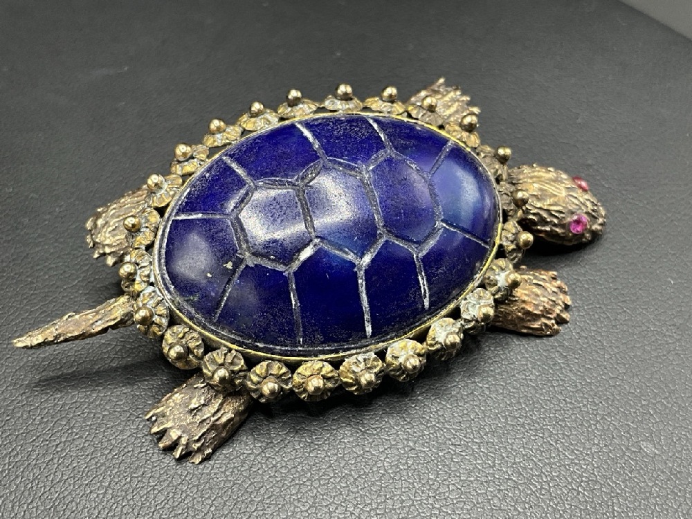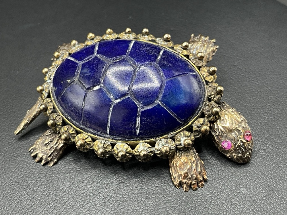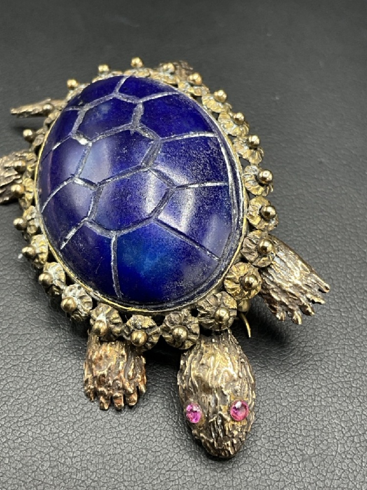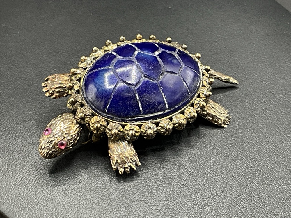 14K Gold Turtle Brooch with Lapis Shell and Ruby Eyes. Tail, Heads and Feet are All Movable.
