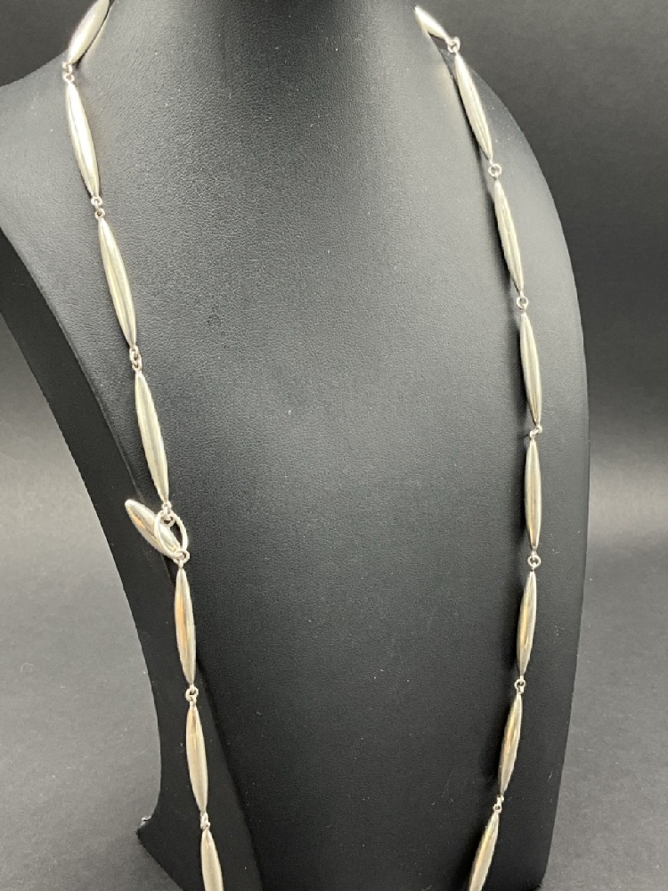 A fine artisan sterling silver necklace by Ted Muehling. Solid sterling silver, presents very fine in quality. Signed.