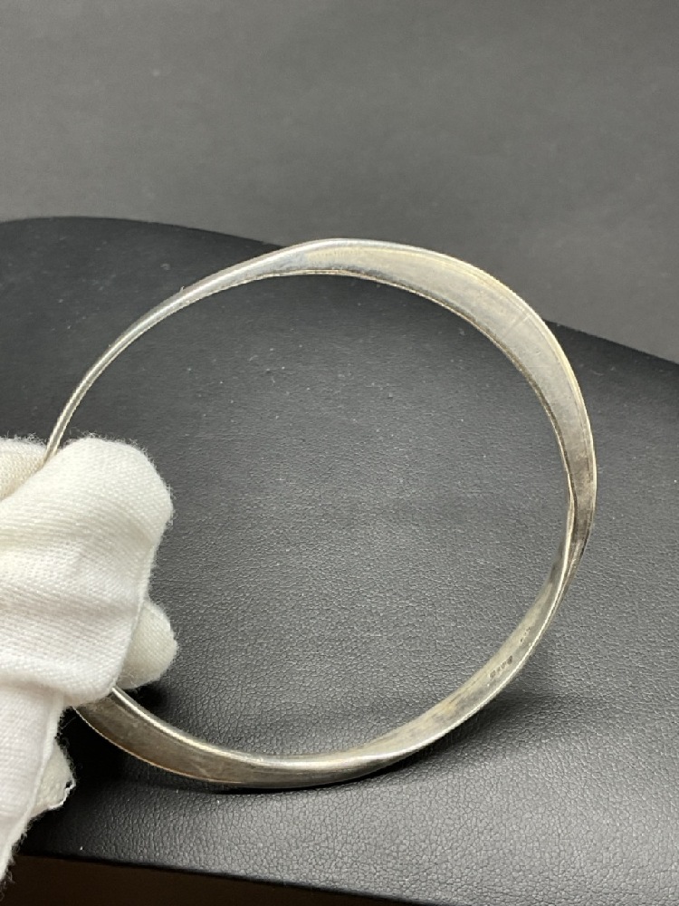 Signed "David" Artisan Sterling Silver Bangle Bracelet.