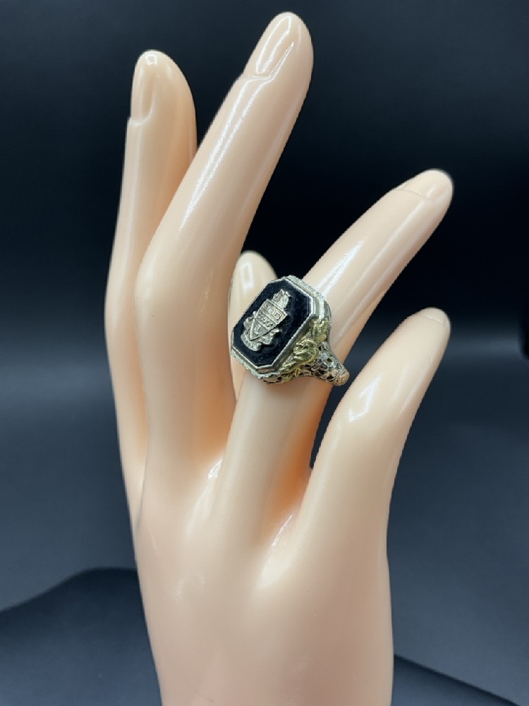 14K Fraternity Ring with Black Onyx Stone.