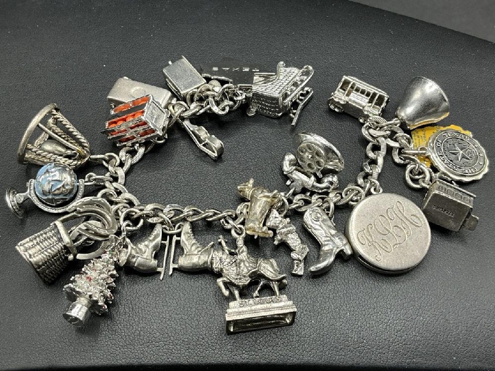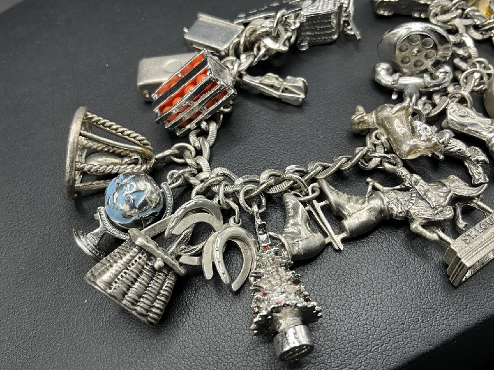 Vintage Sterling Silver Charm Bracelet with Large Amount of Various Charms.