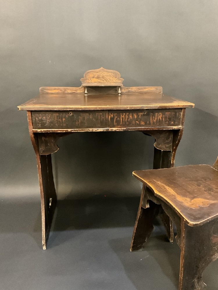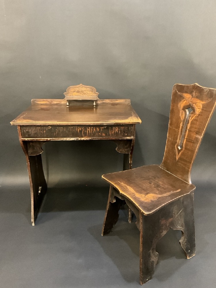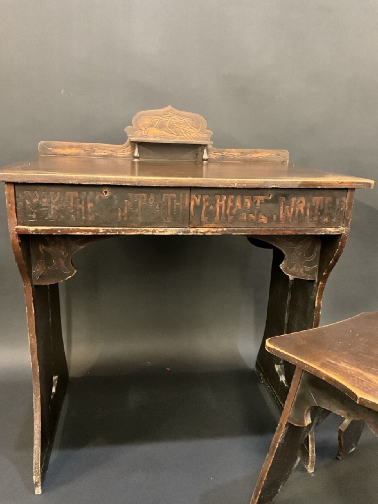 English Arts and Crafts Nouveau Style Writing Desk with Chair. Includes key.