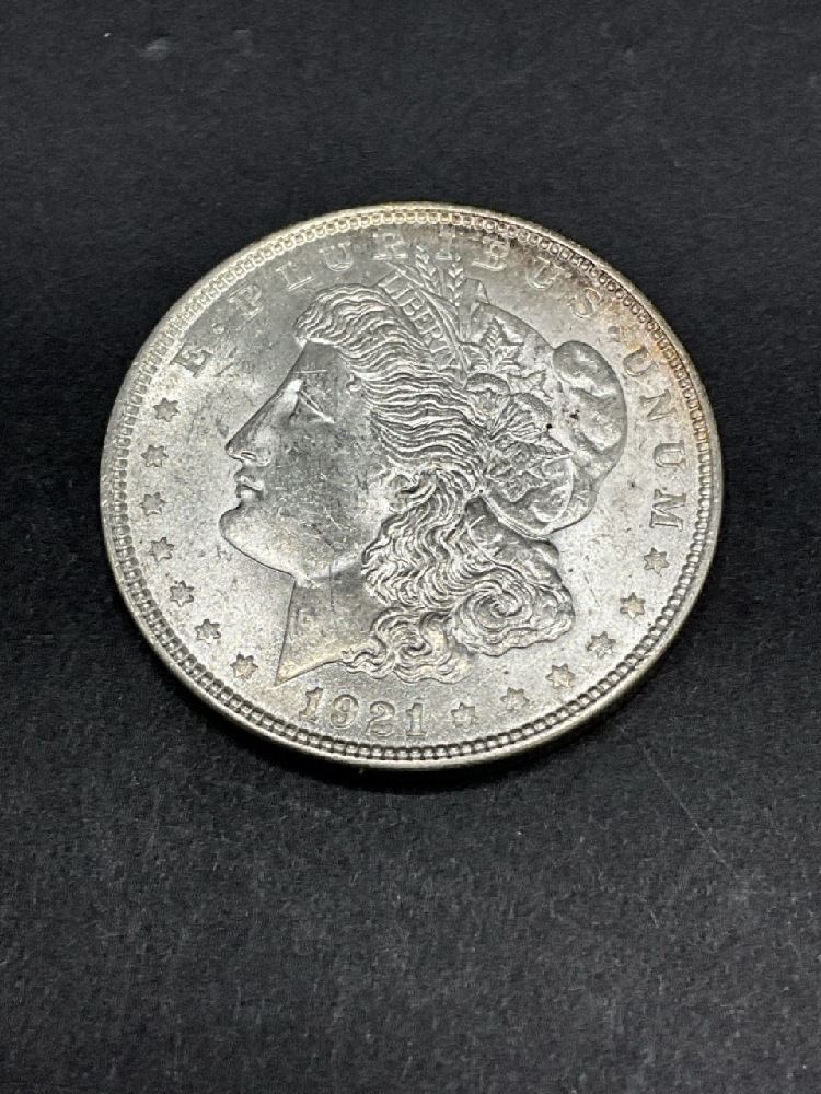 Uncirculated 1921-P Morgan Silver Dollar.