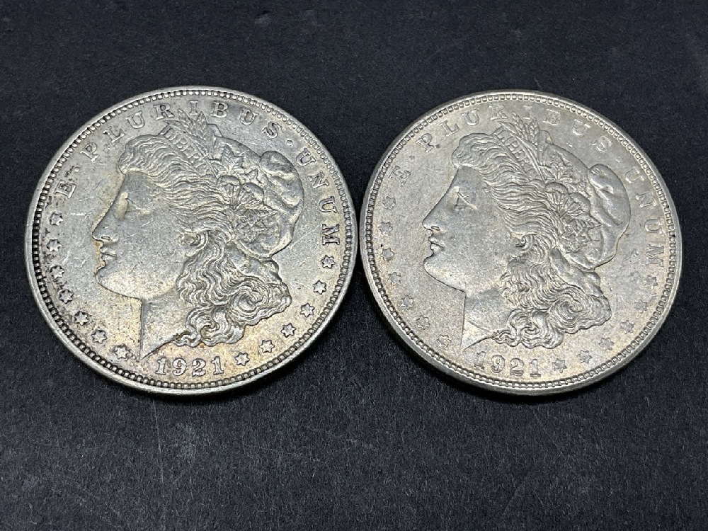 (2) 1921 Morgan U.S. Silver Dollars.