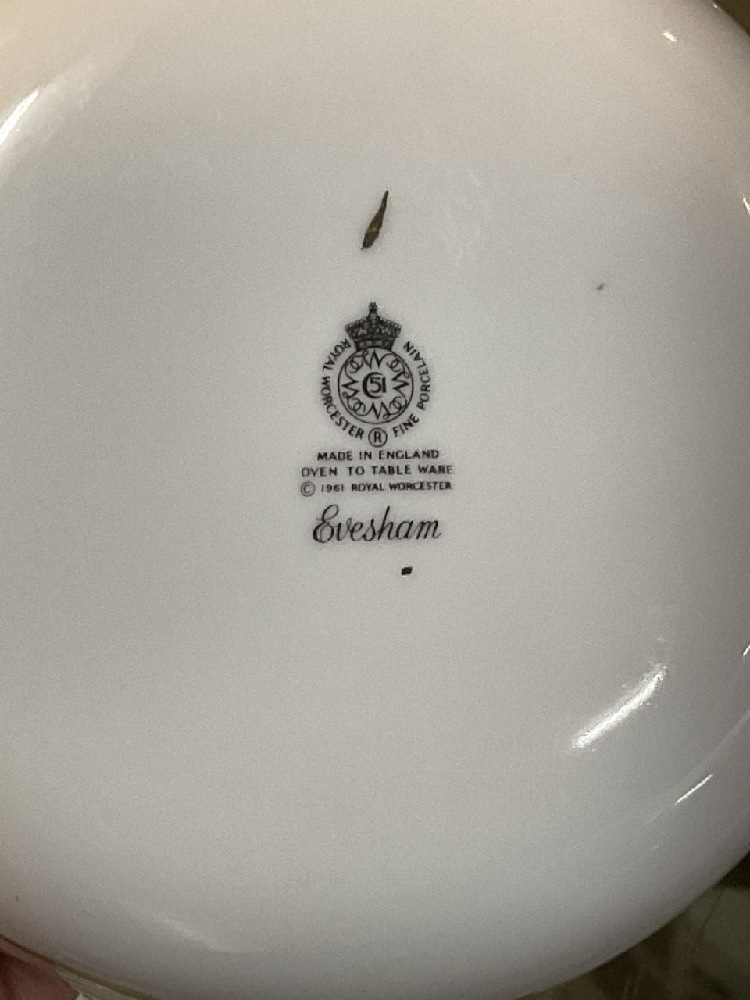 (99) Pieces of Royal Worcester Evesham Oven To Table Ware. A Large porcelain dinneware service. Very good condition (one bowl has chip) Please see photograph preview.