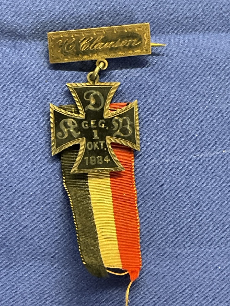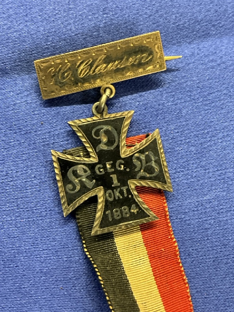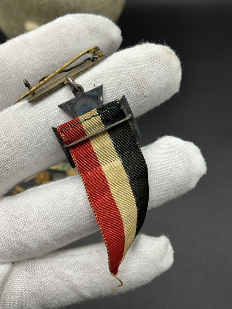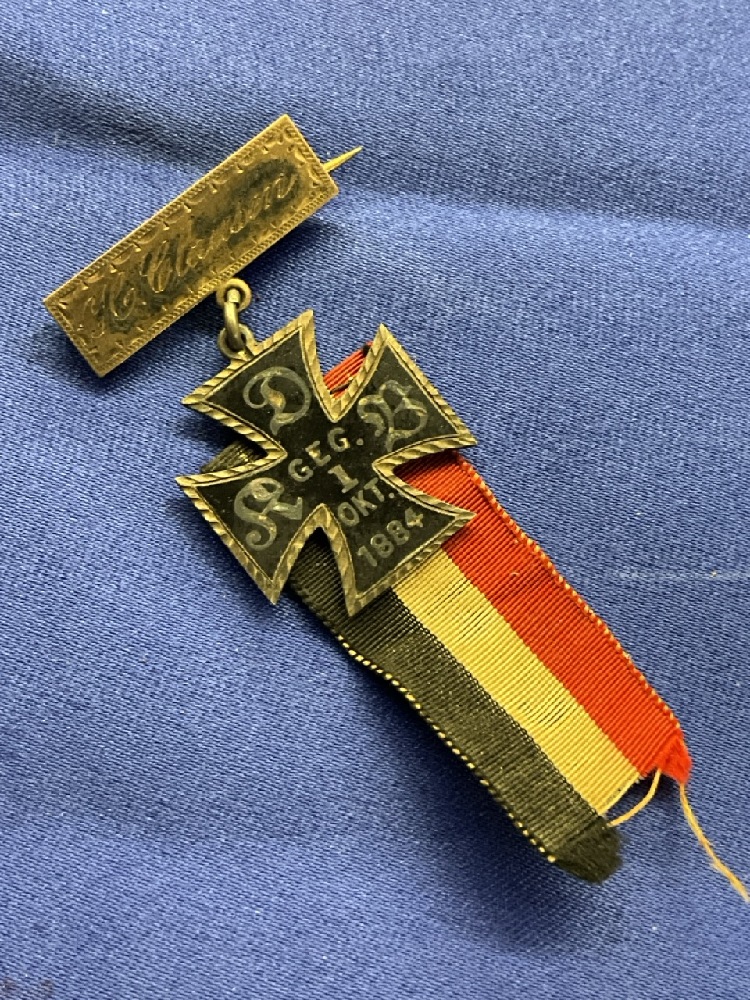 Small Silver 1884 German Iron Cross w/ Ribbon.
