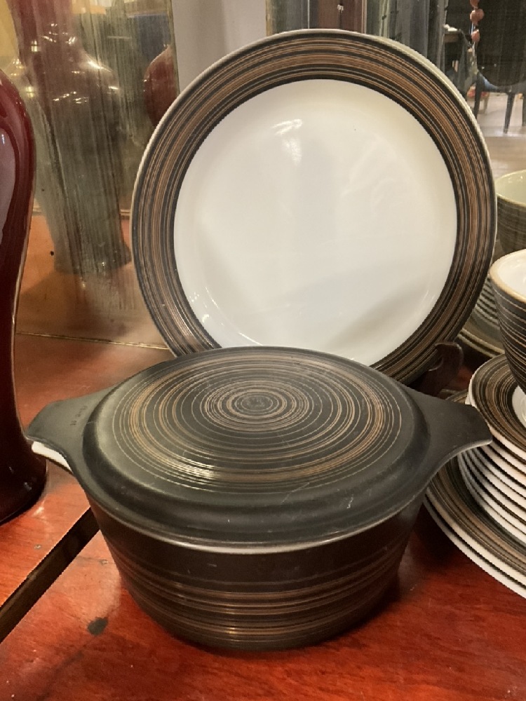 Vintage Pyrex Rare Terra Design Serve Ware - (25) Pieces . As seen in photograph preview. Set is used. No cracks or repairs noted.