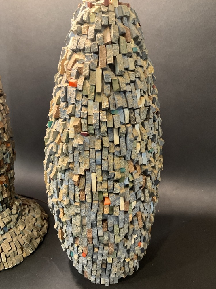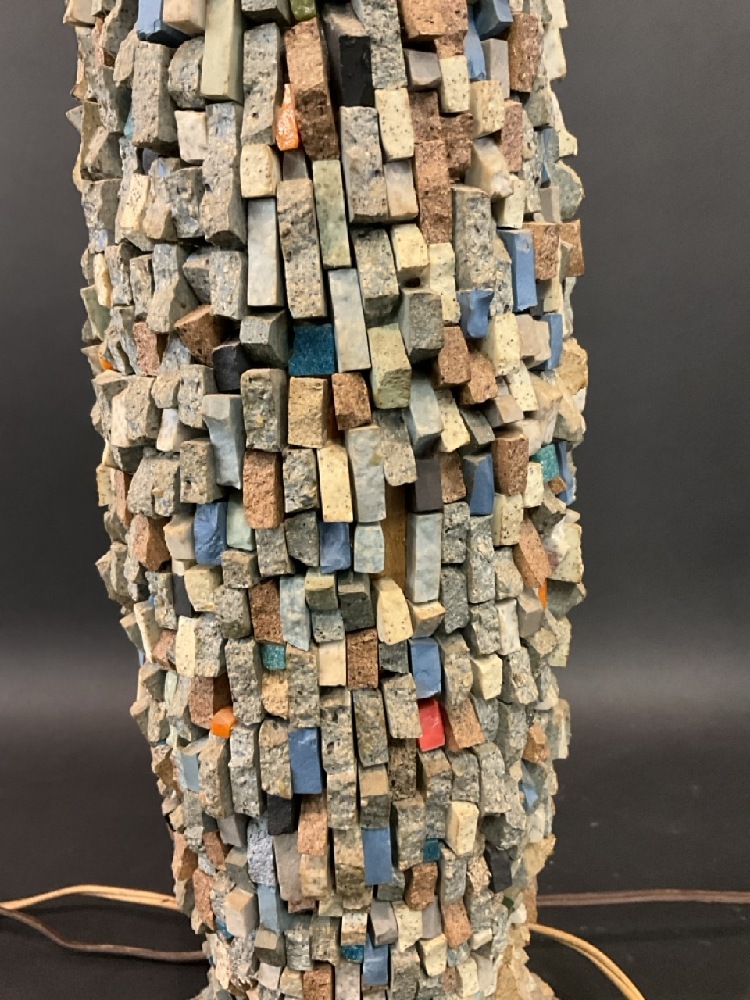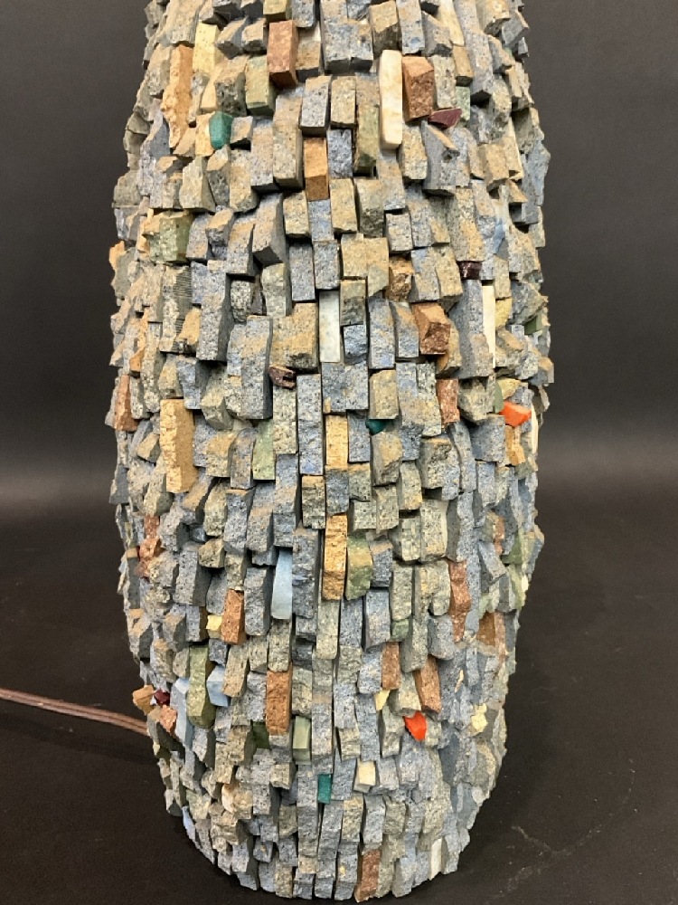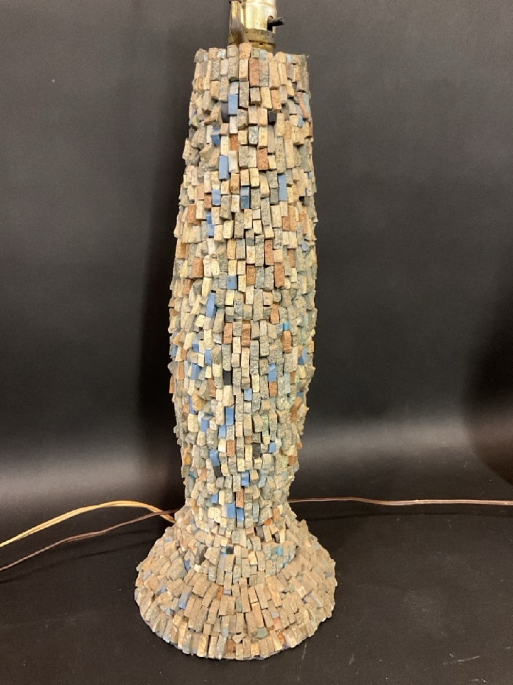 Conditions - both lamps are in working condition. The taller lamp has a few pieces of tile missing from the base.