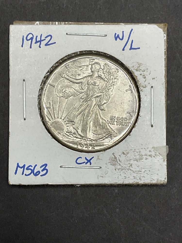 Uncirculated Silver 1942 U.S. Walking Liberty Half Dollar.