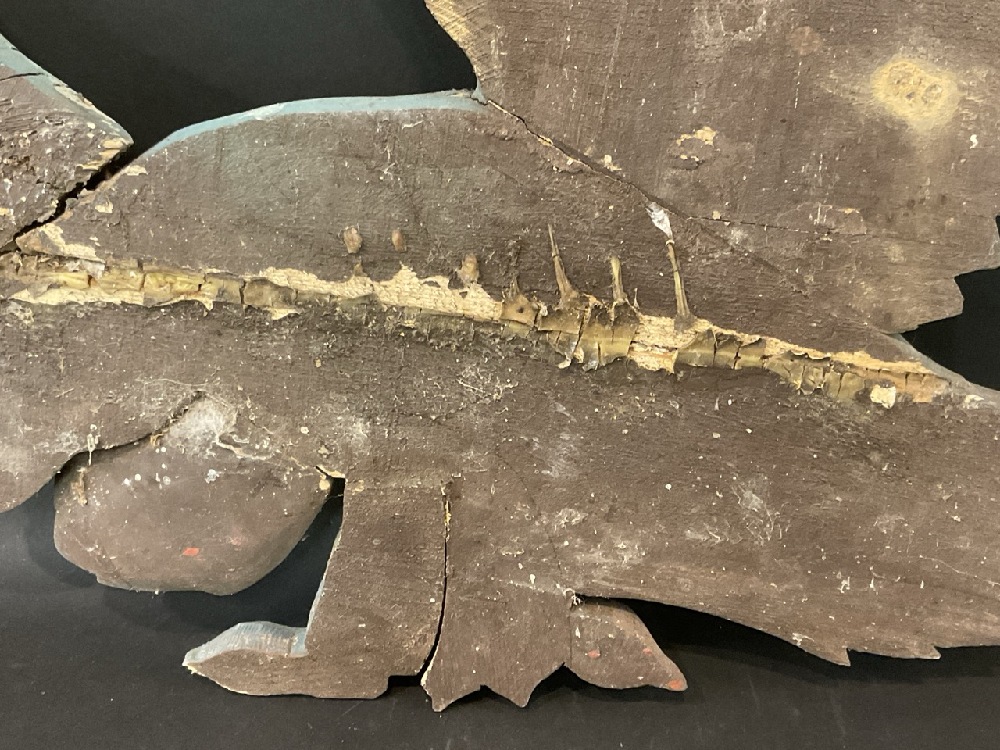 Repair noted on the back and repair noted to the wing.
