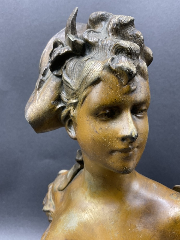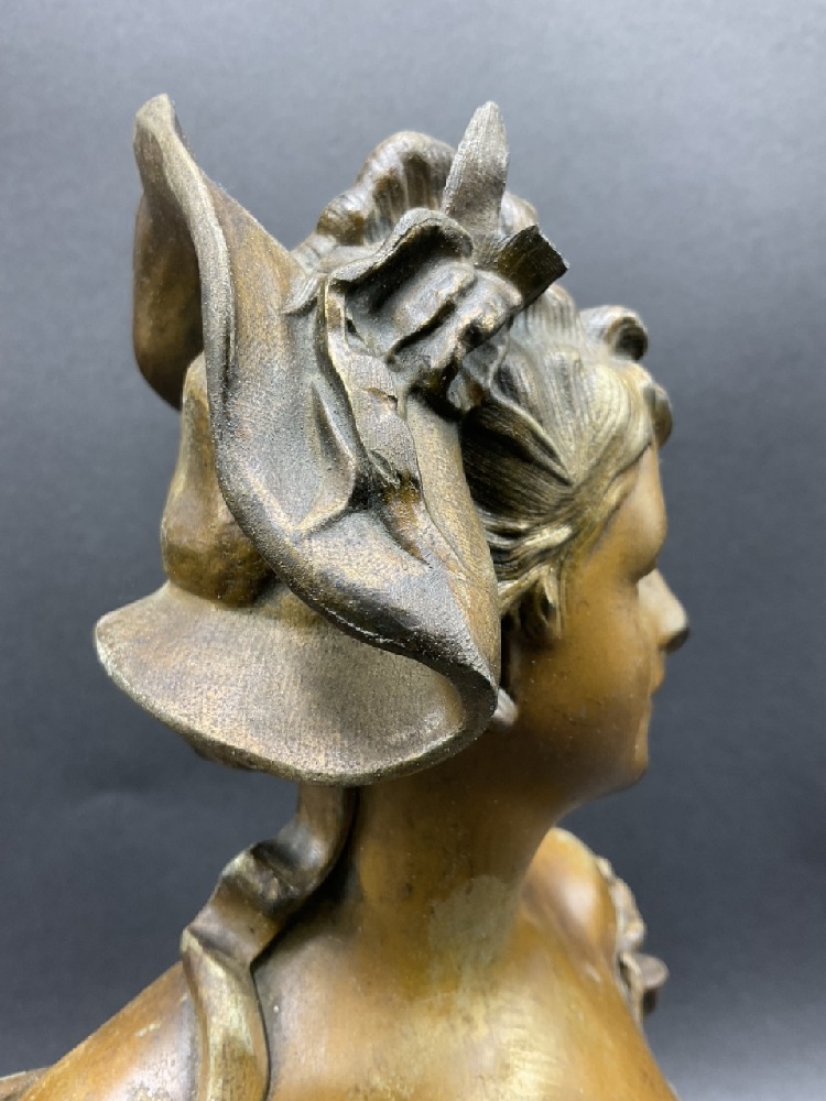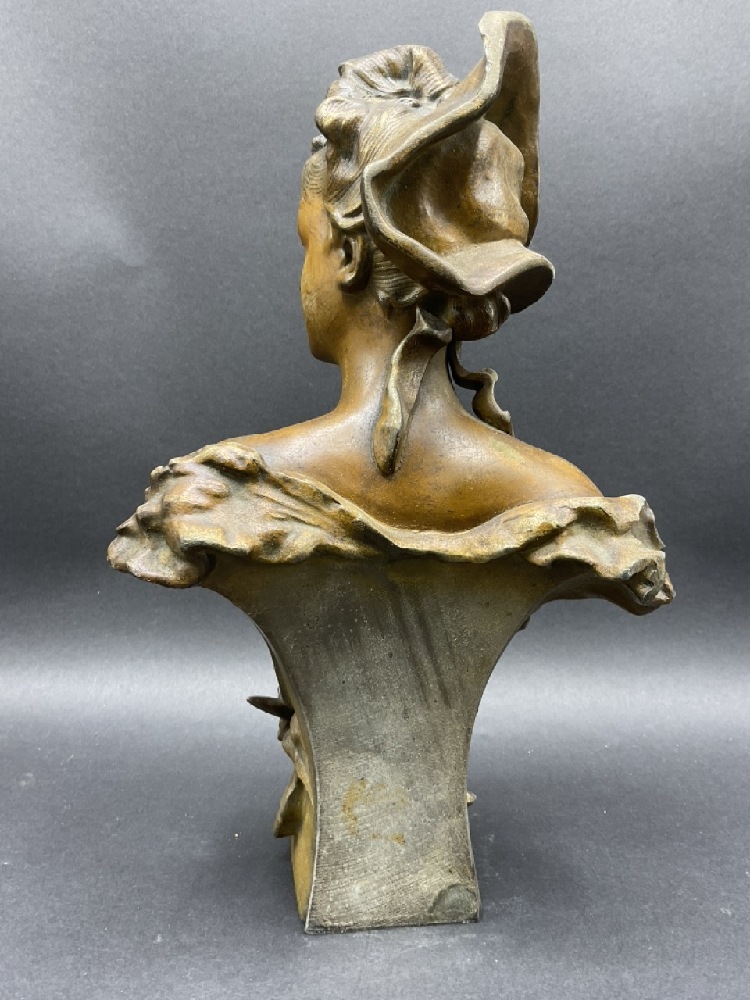 Art Nouveau Spelter Bust After Jean Foretay with bronze colored finish.