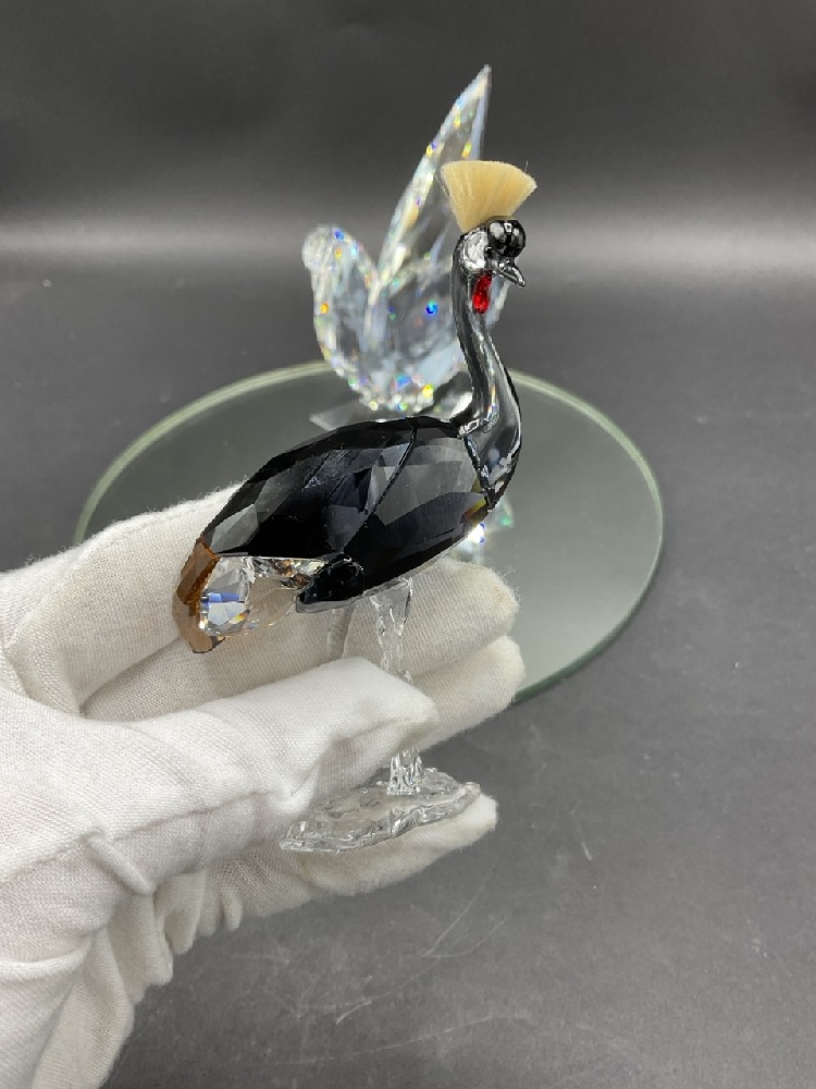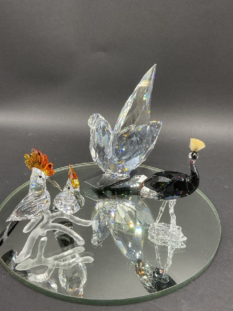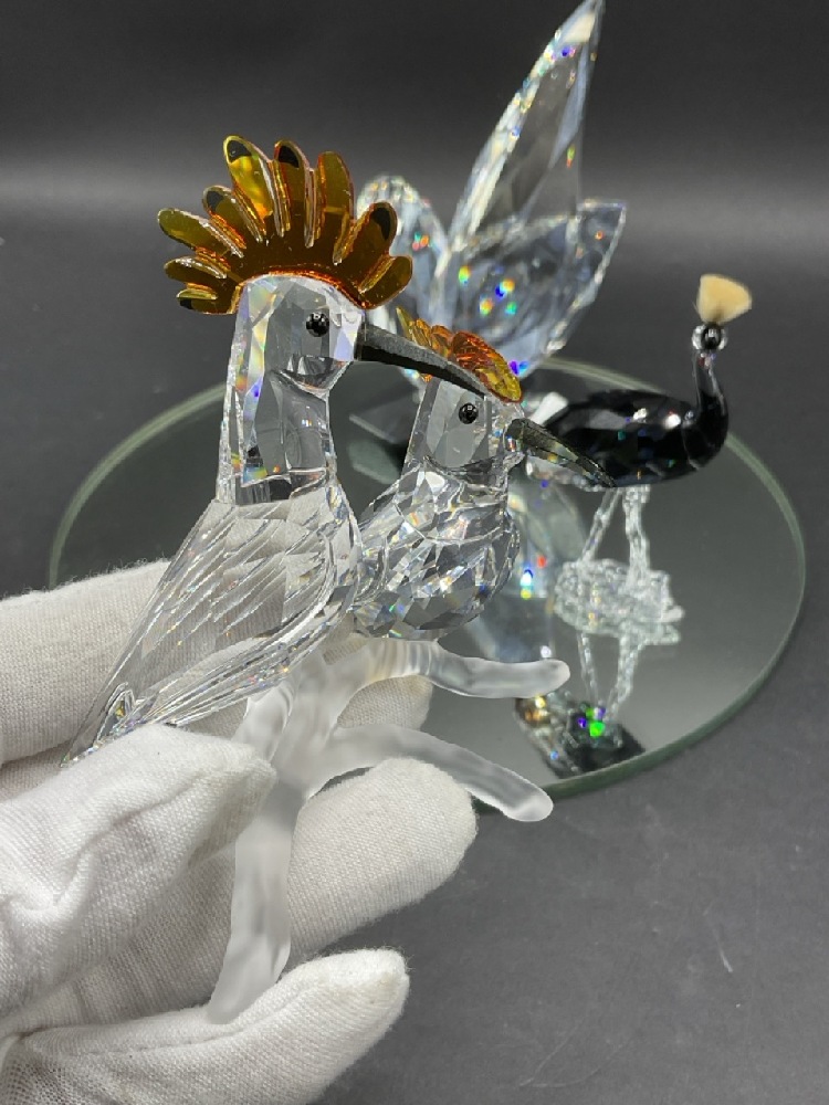 A compiled grouping of Swarovski crystal birds.