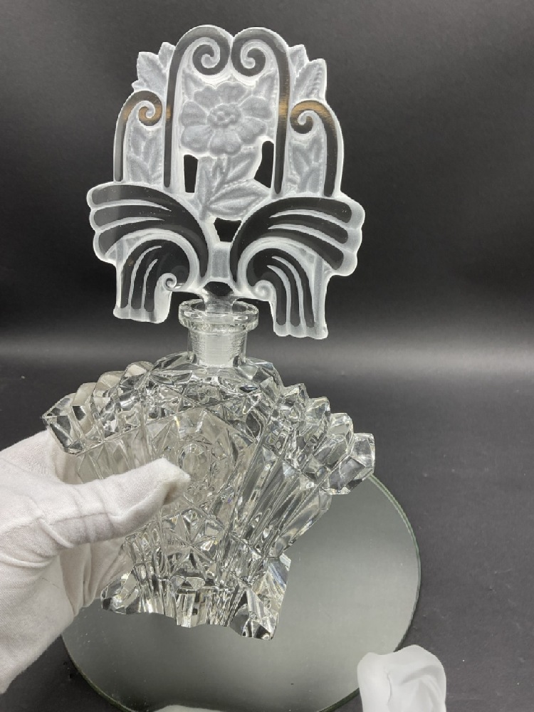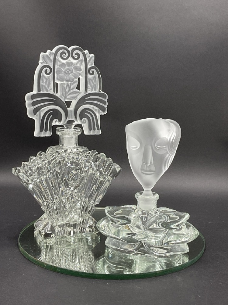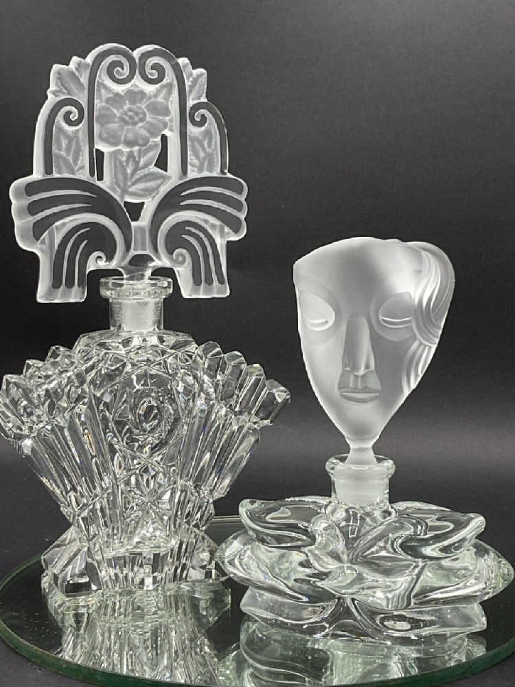 Two (2) Large Deco Style Crystal Perfume Bottles.