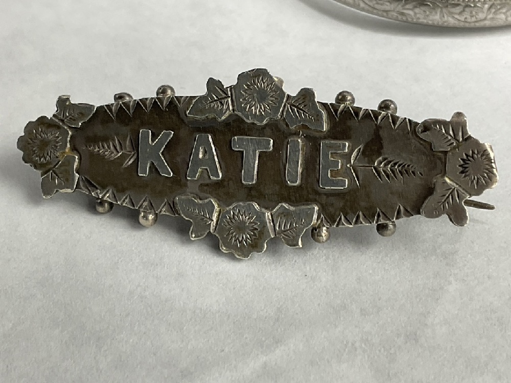 3 Piece Sterling Silver Jewelry. "Katie" pin, Square modernist pin and small bangle bracelet.