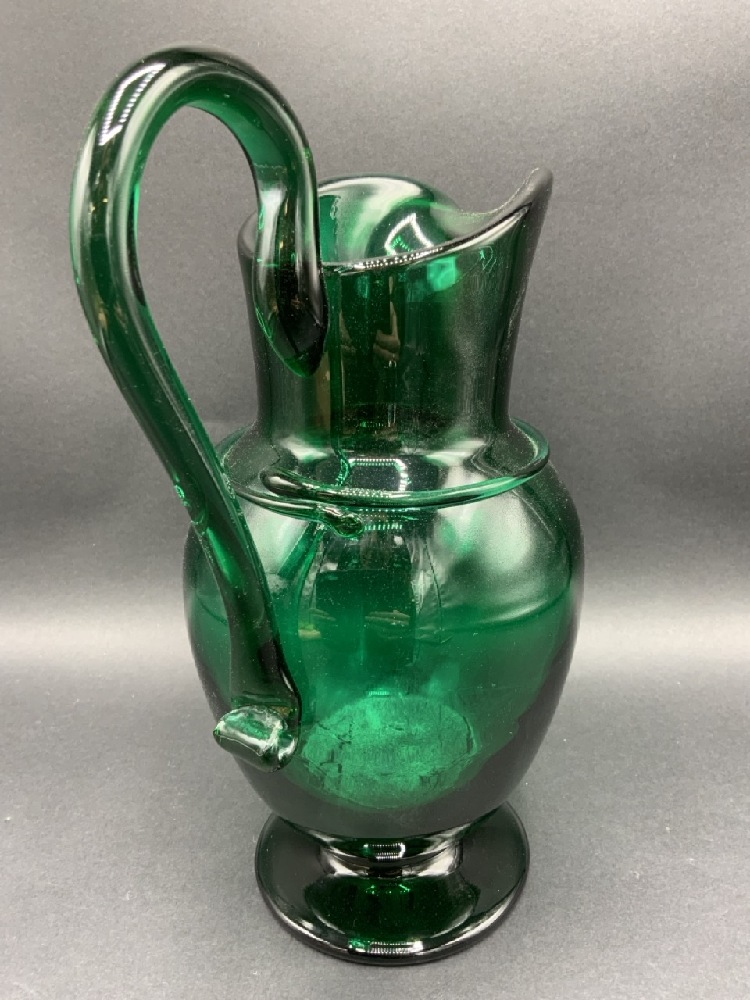 Vtg Metropolitan Museum of Art Saratoga Portugal Handblown Emerald Green Pitcher