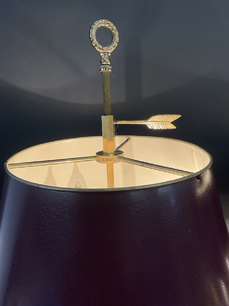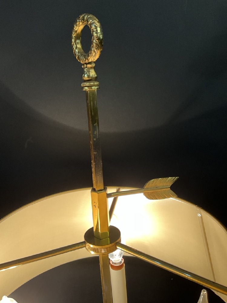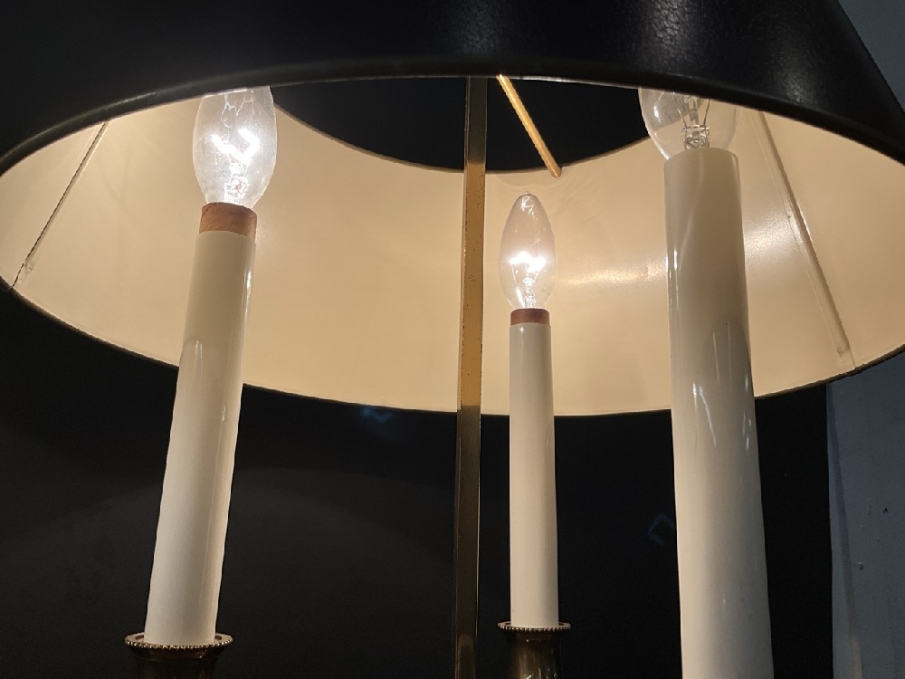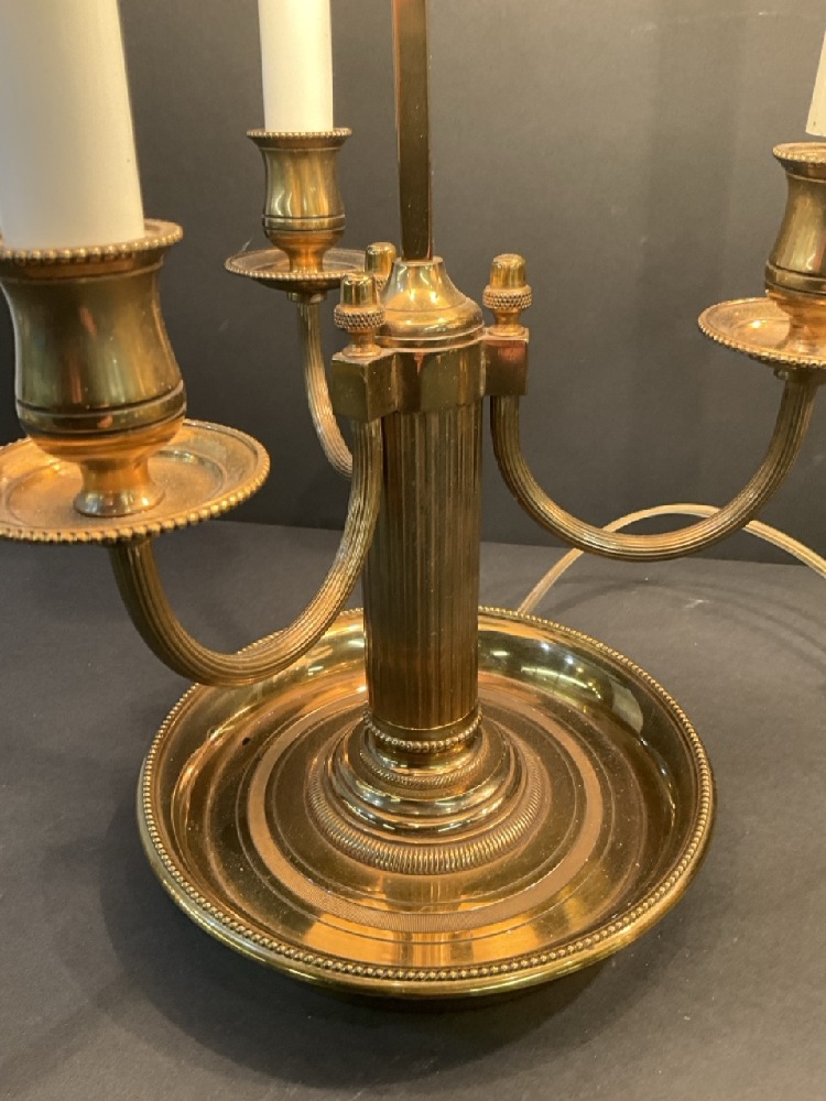 Brass French Empire Style (3) Arm Bouillotte Lamps. Quality pair with tin shades.