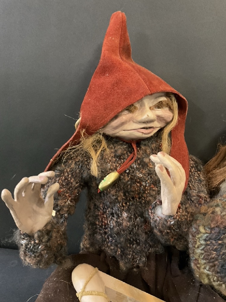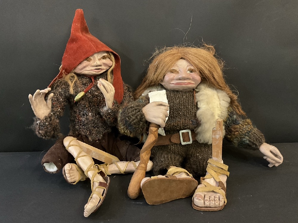 Interesting Artisan Vintage Wooden/Clay Elves or Troll Dolls.