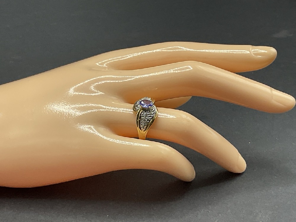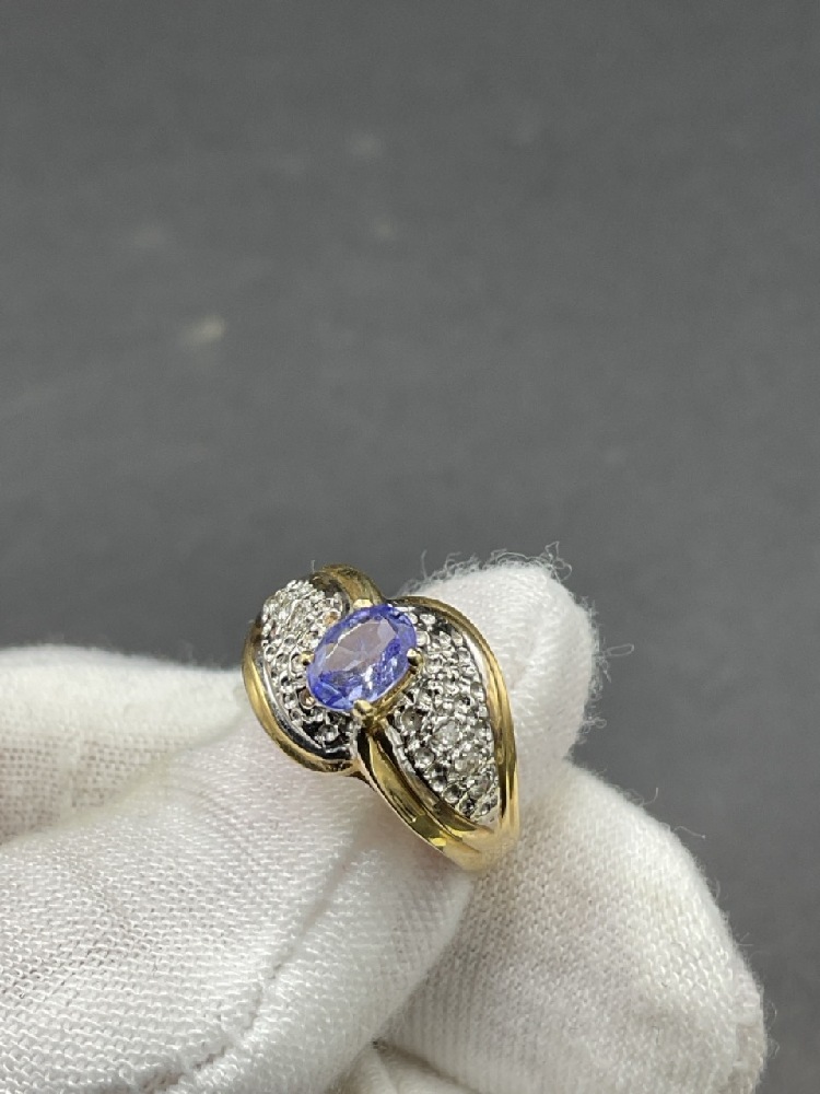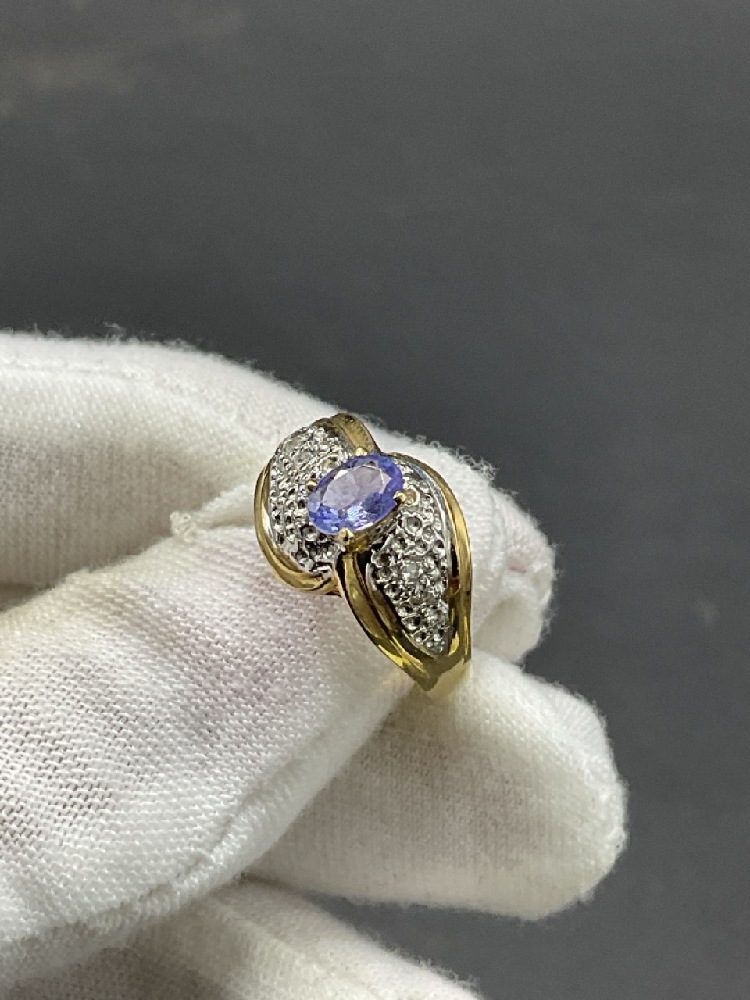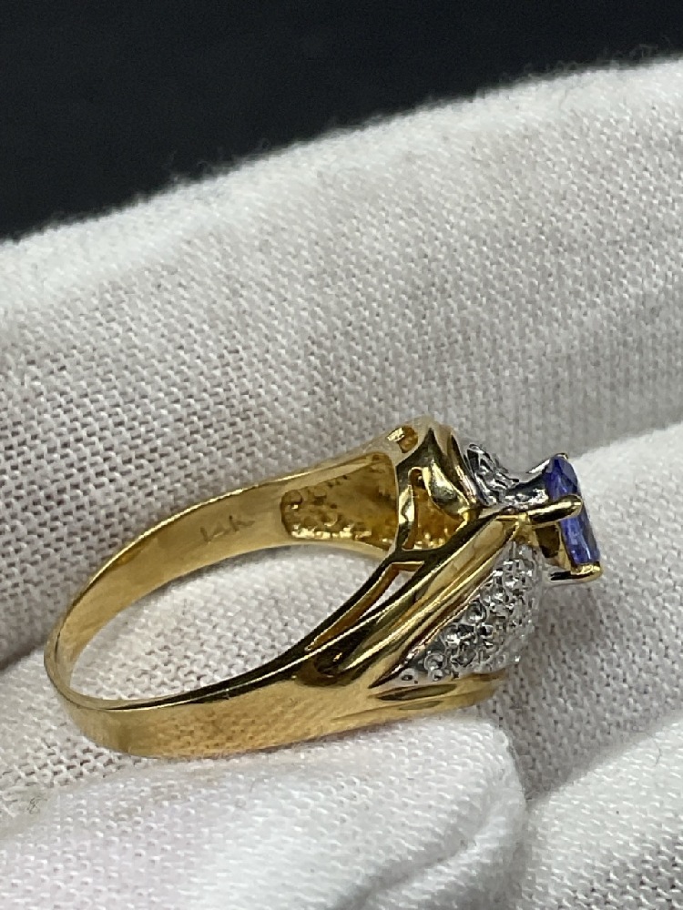 14K Yellow Gold Tanzanite and Diamond Ring.