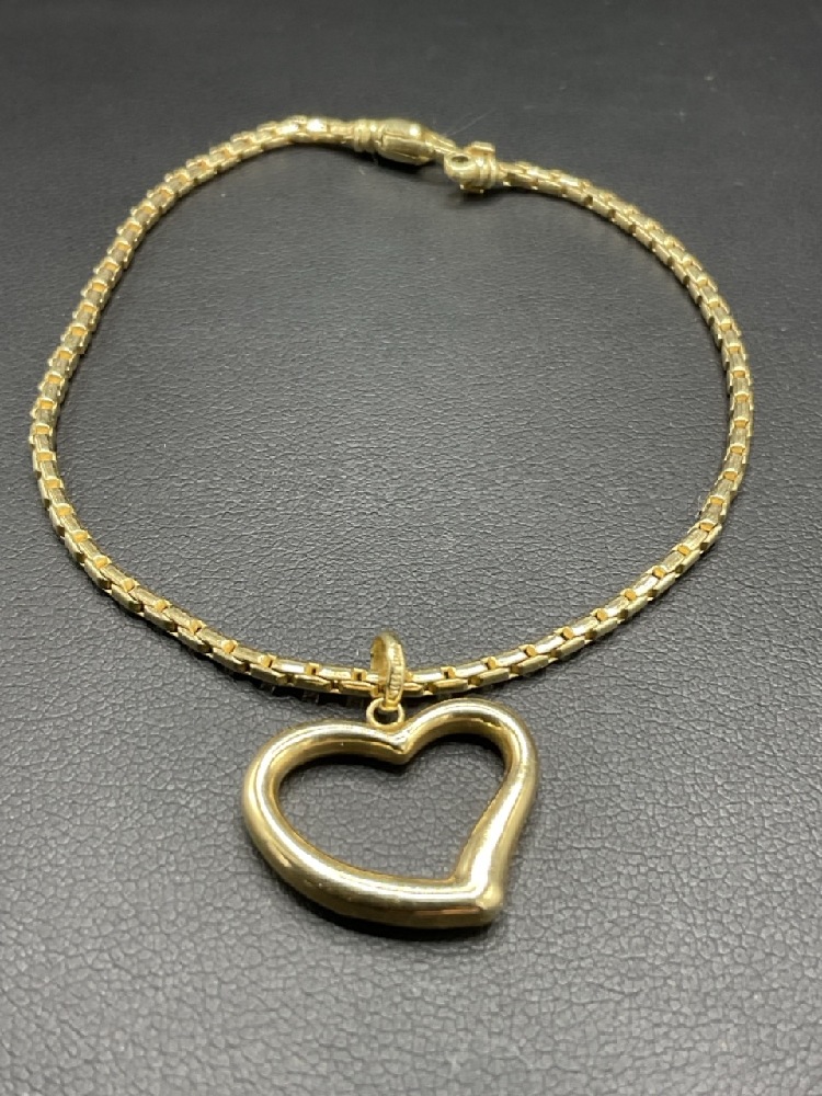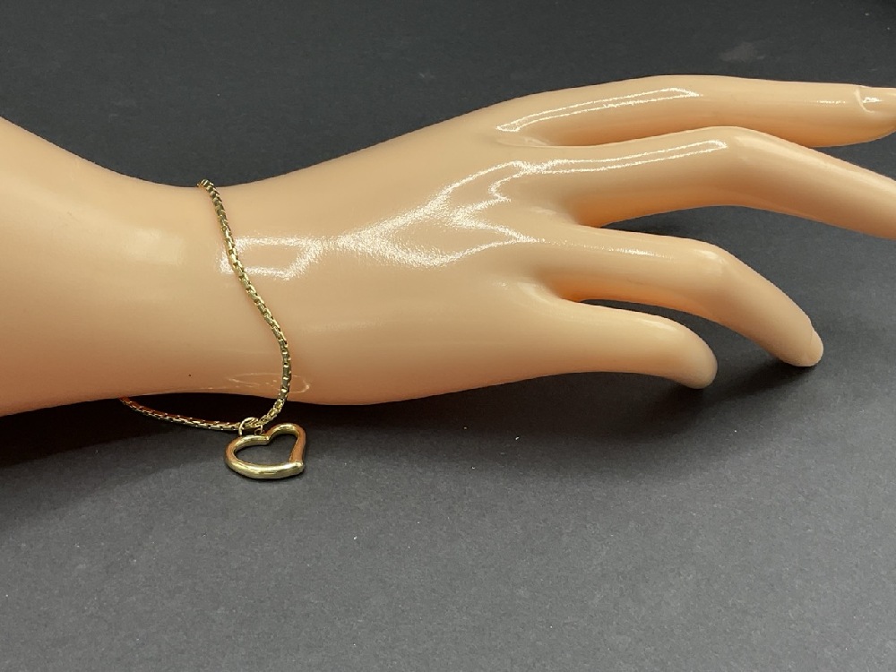 14K Yellow Gold Heart Bracelet. Made in Italy.
