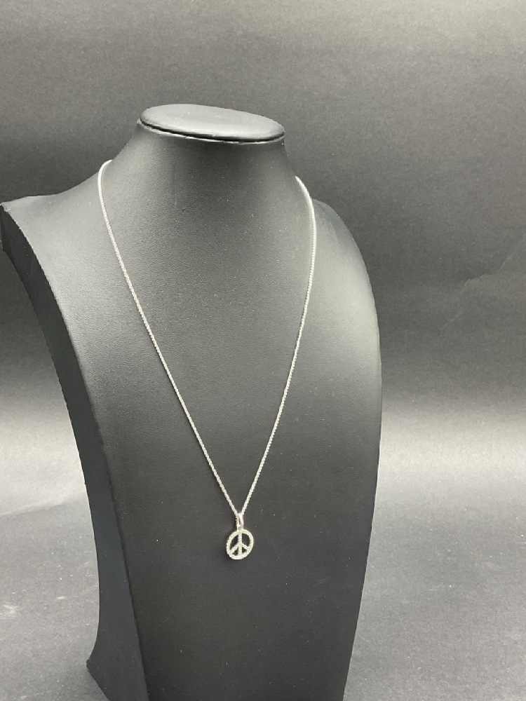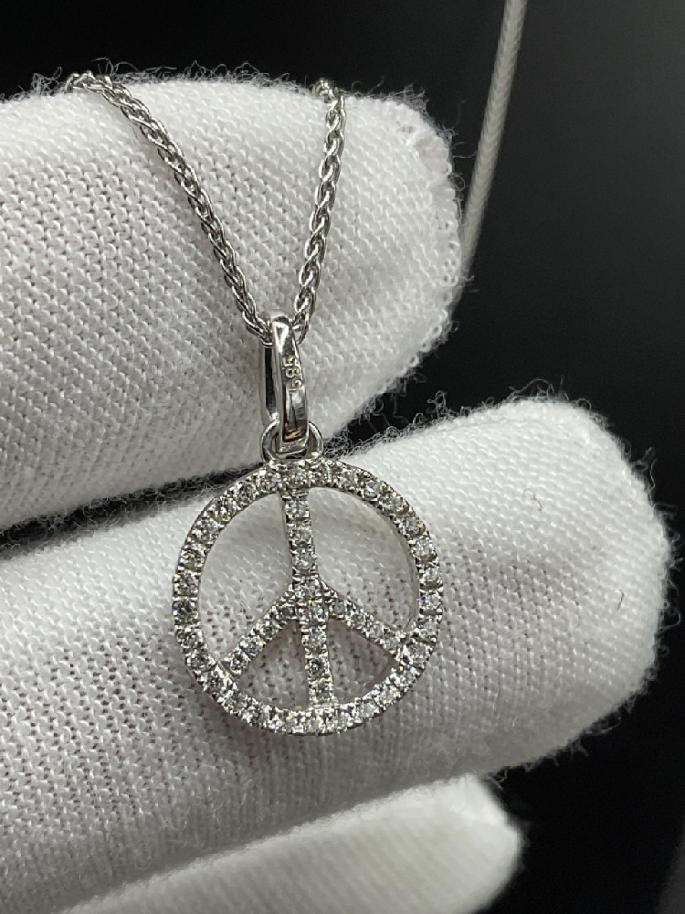 14K White Gold Diamond "Peace" Symbol Necklace.